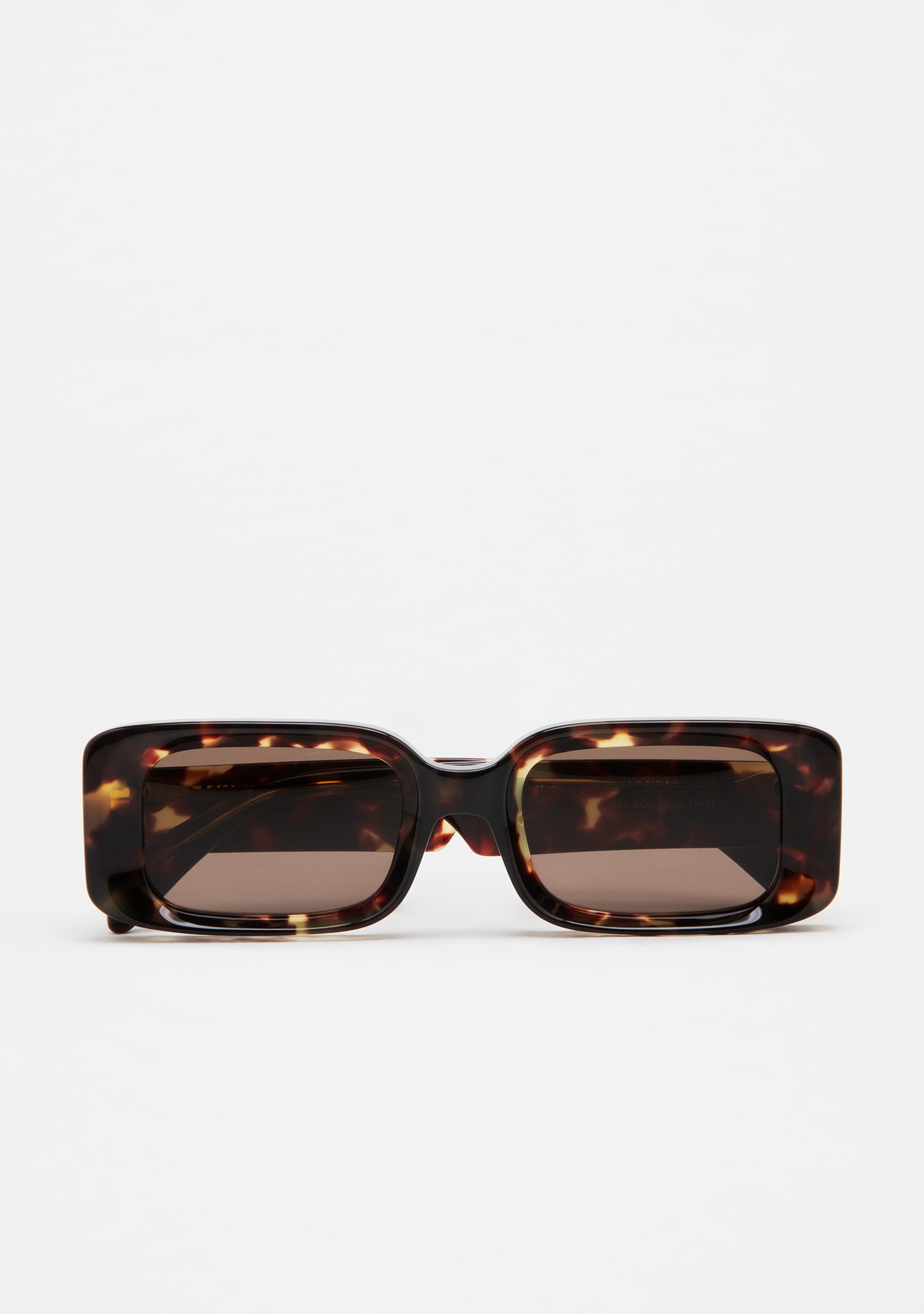 Thick, single-color acetate sunglasses. Rectangular shape with milling around the lens. Acetate temples. Base 2 lenses with 100% UV protection and anti-reflective treatment. Category 3 lenses. Built-in acetate pads. Handmade.