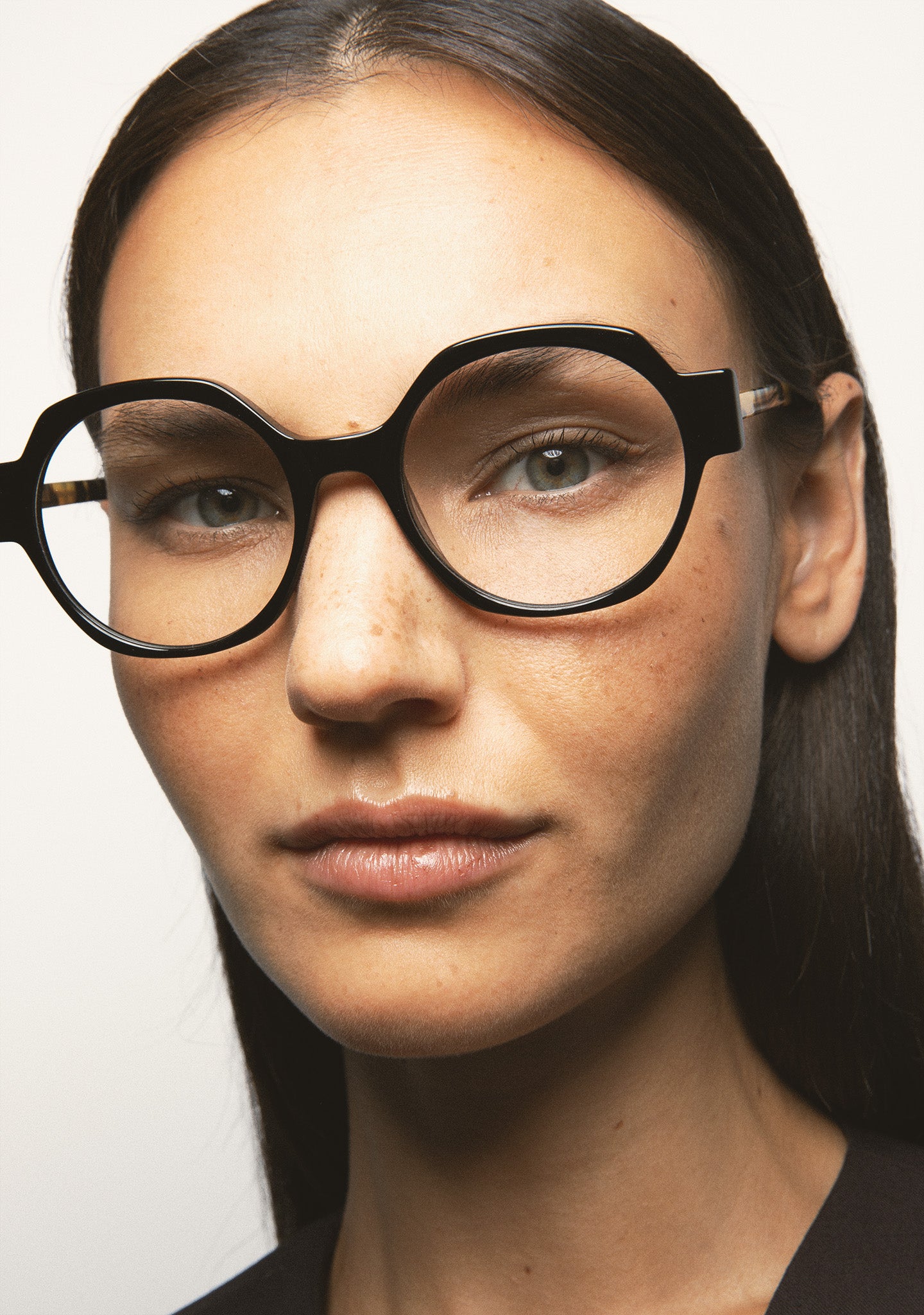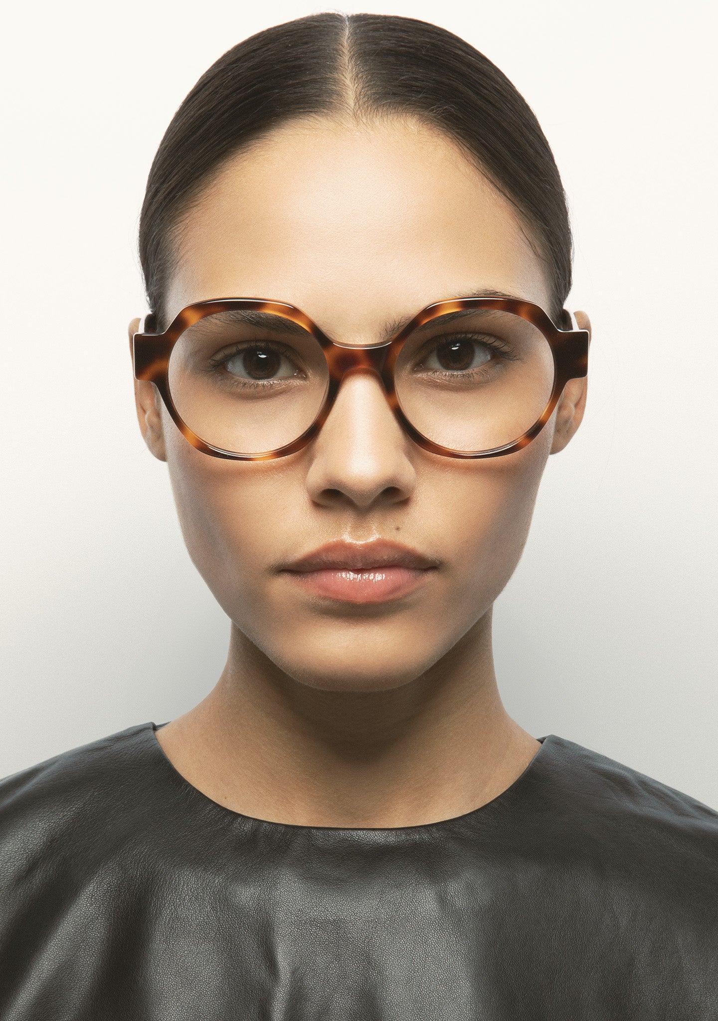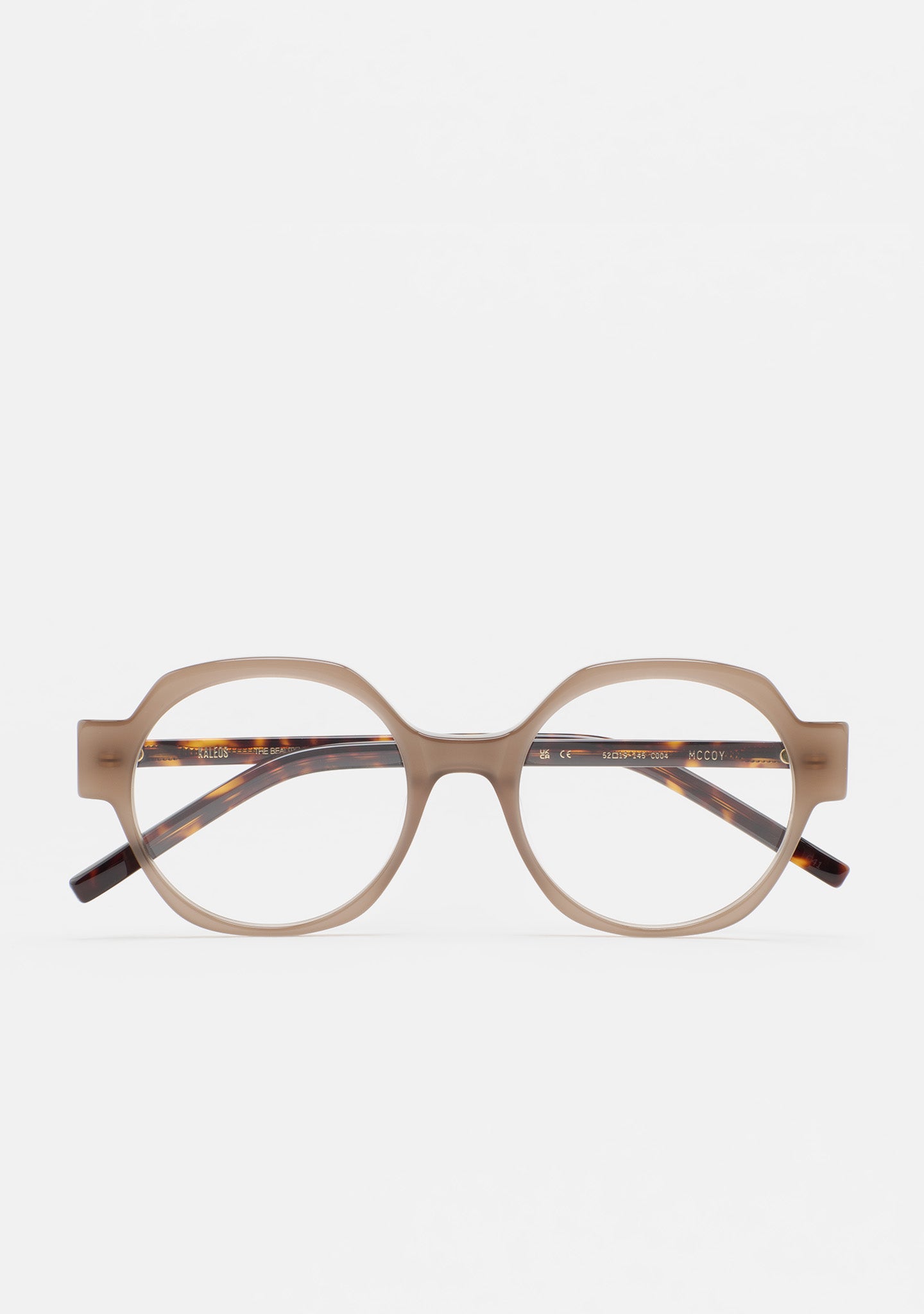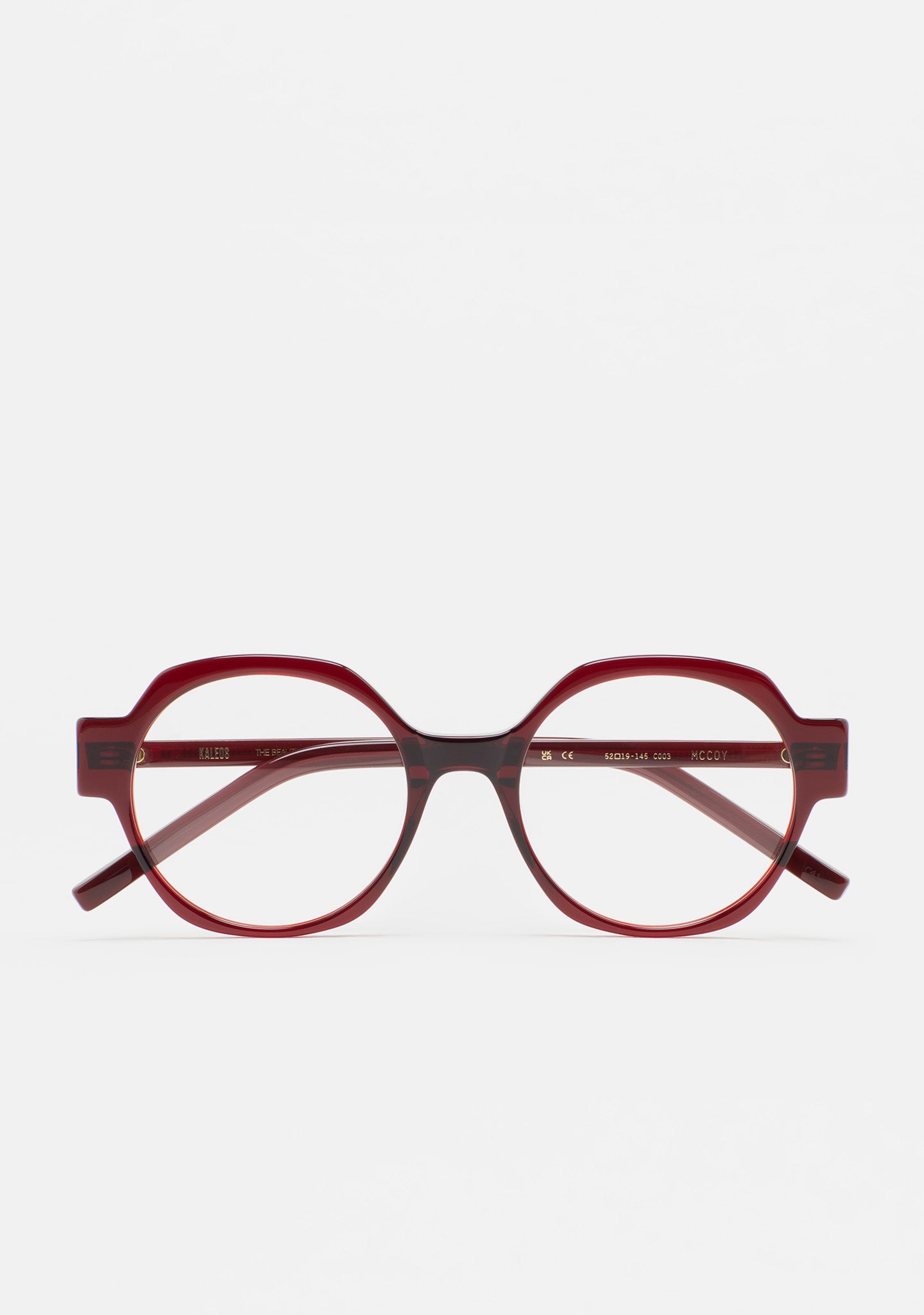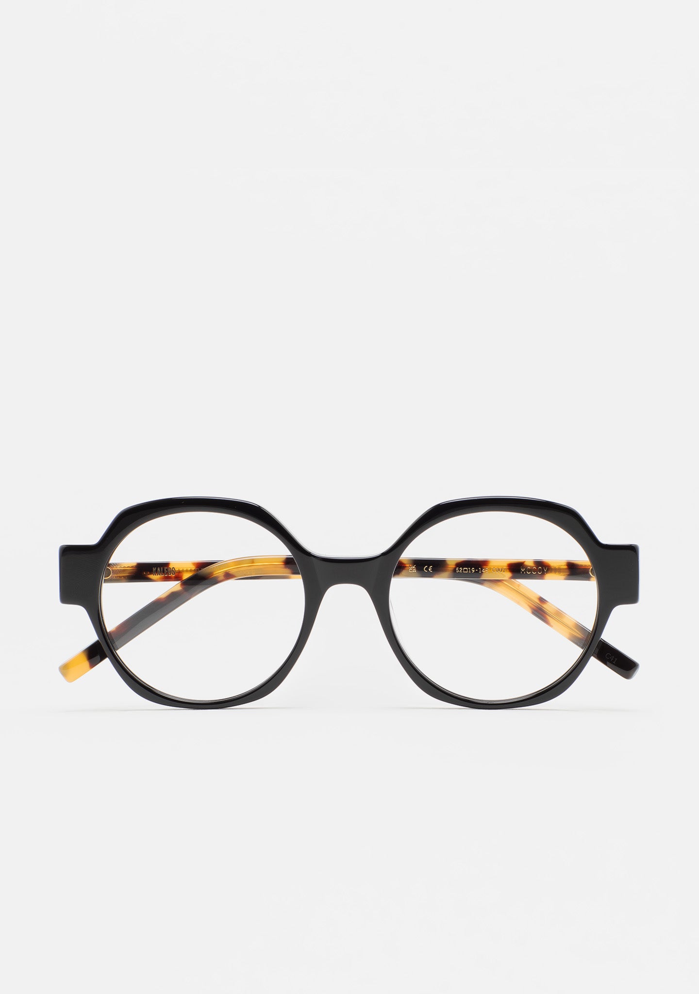 Gafa de ver de forma redondeada. Frontal de acetato. Varillas de acetato. Plaquetas de acetato incorporadas. Hecha a mano.