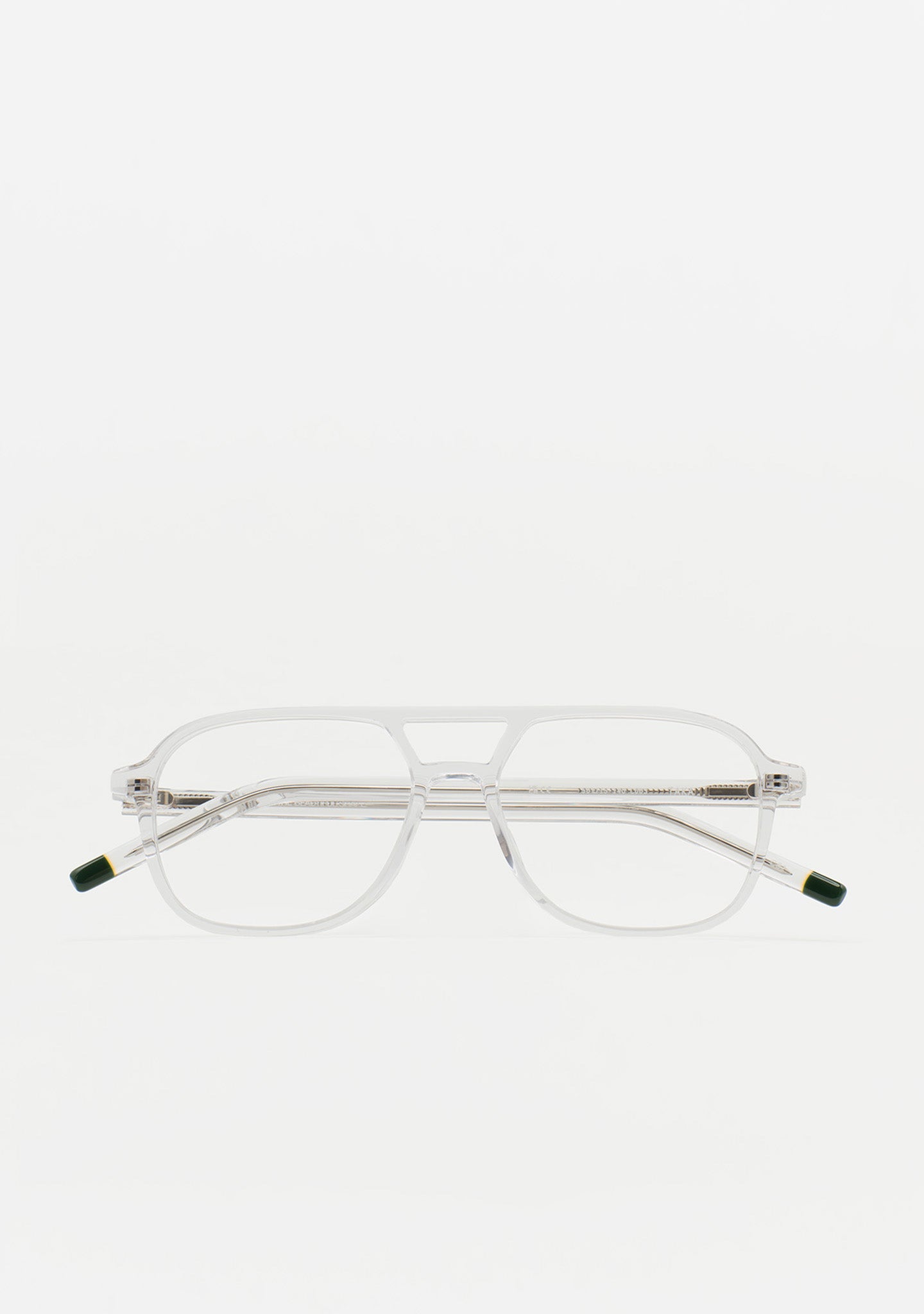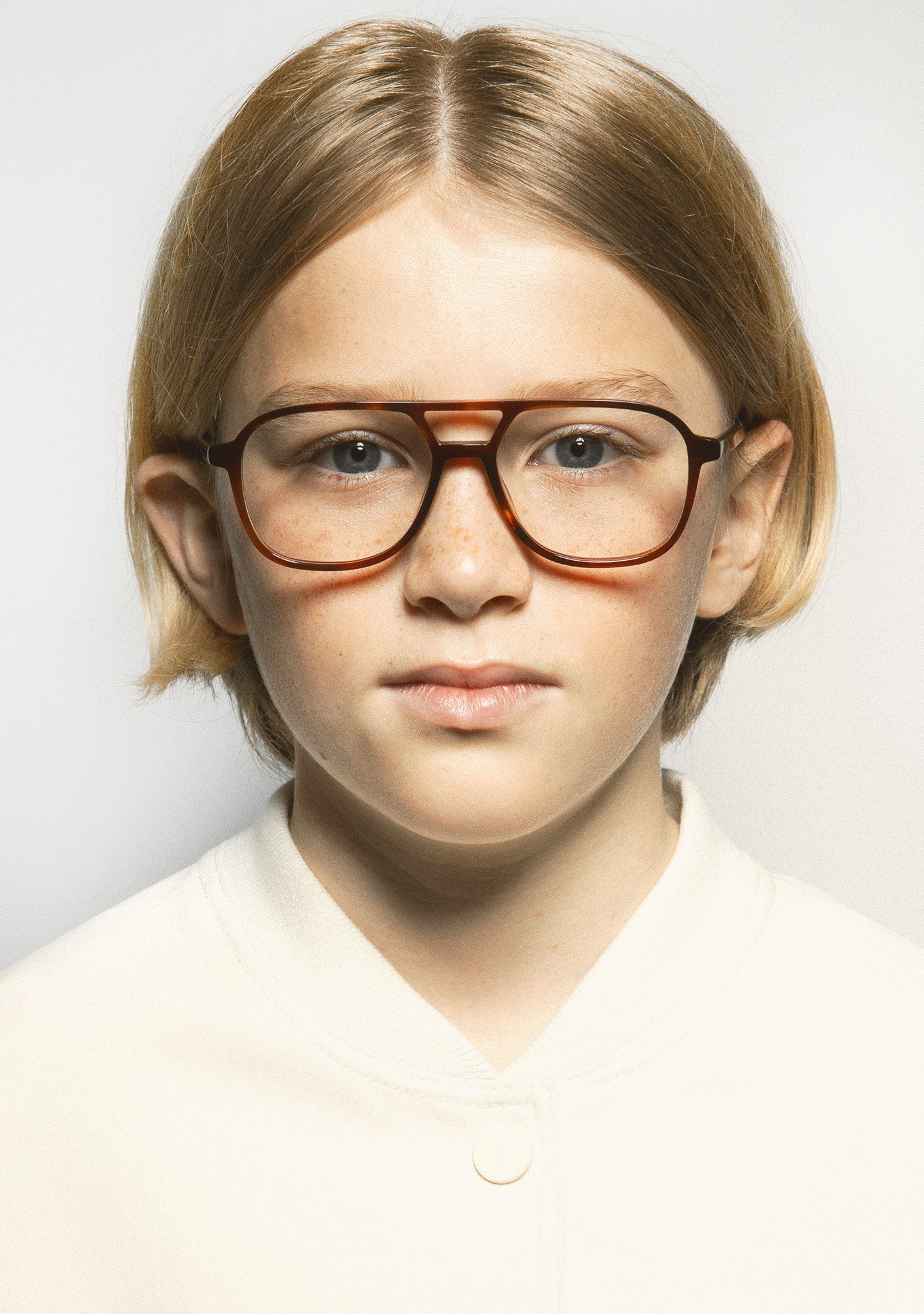 Gafas de ver KIDS de forma aviador con doble puente. Frontal y varillas de acetato. Varillas con terminal. Plaquetas de acetato incorporadas. Hecha a mano.