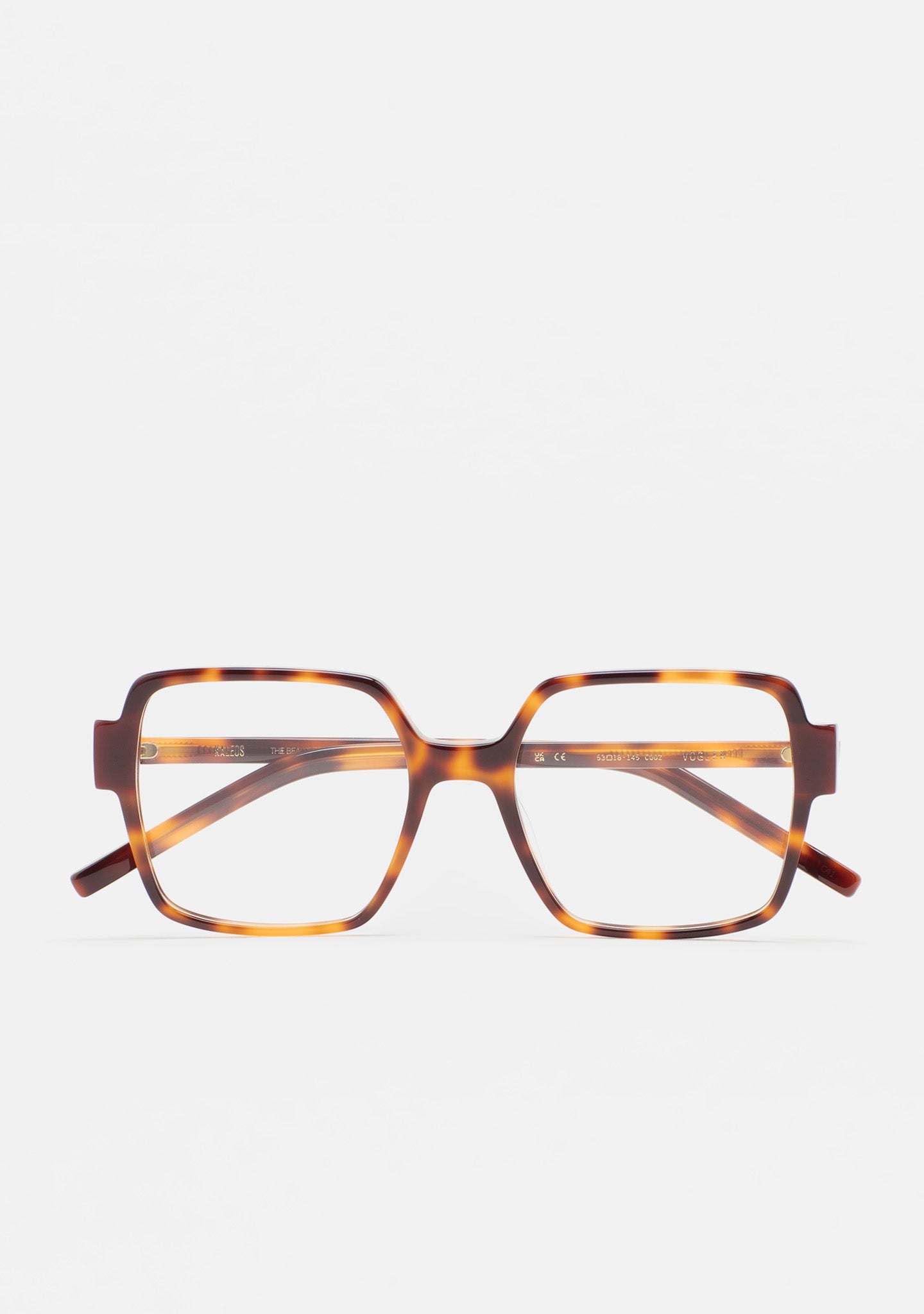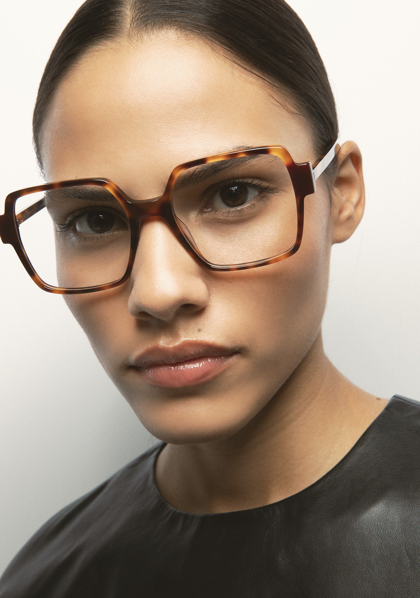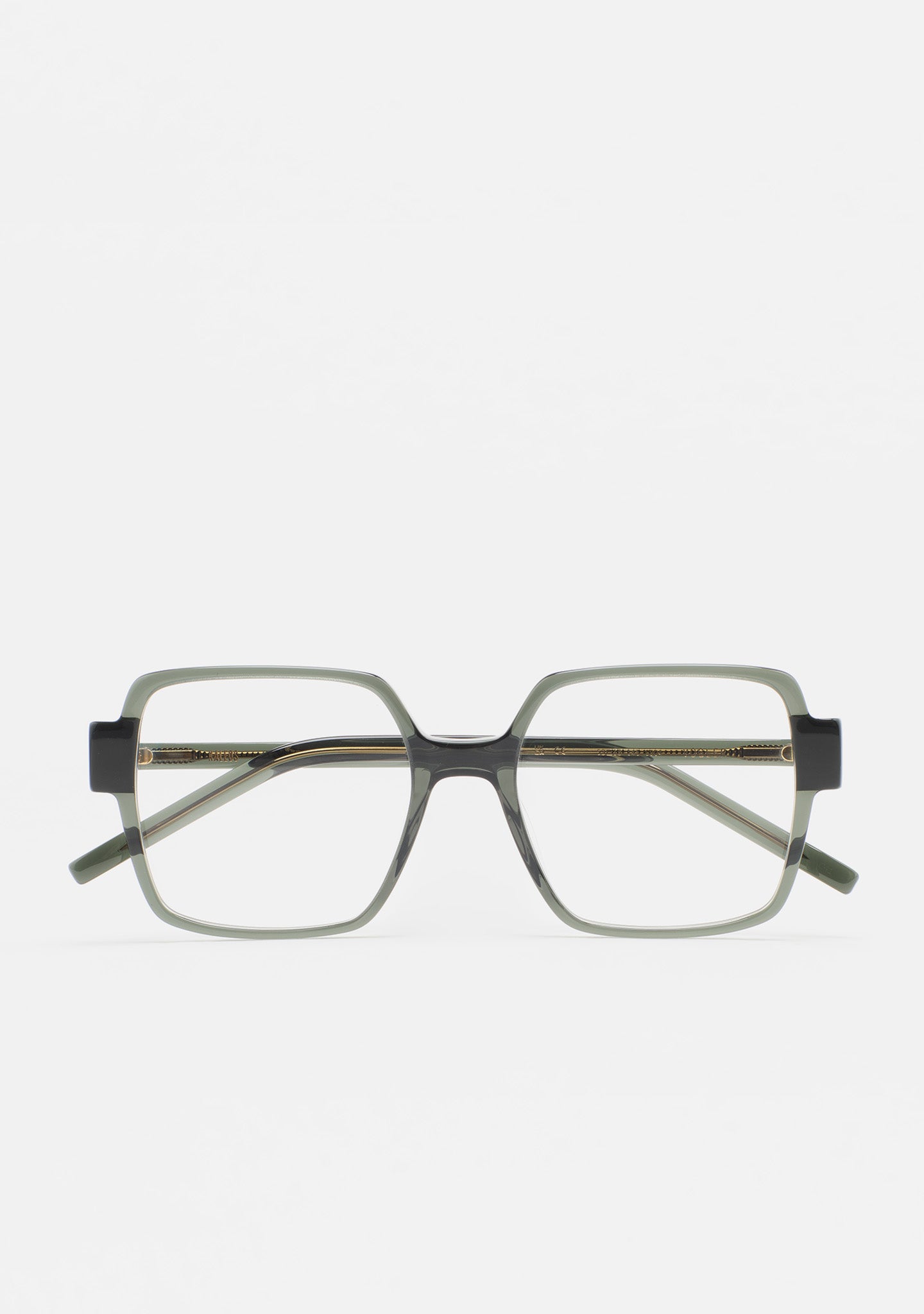 Gafa de ver de forma cuadrada. Frontal de acetato. Varillas de acetato. Plaquetas de acetato incorporadas. Hecha a mano.