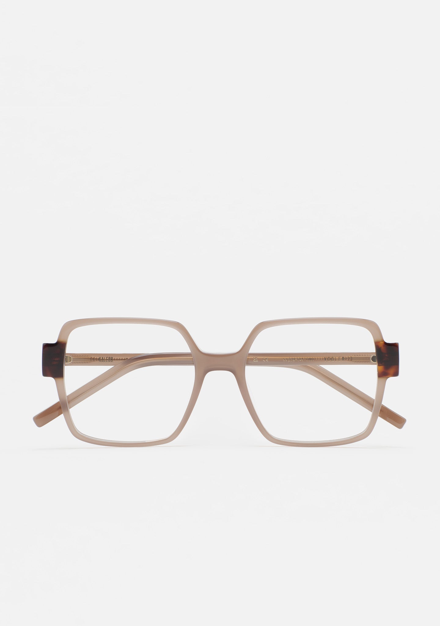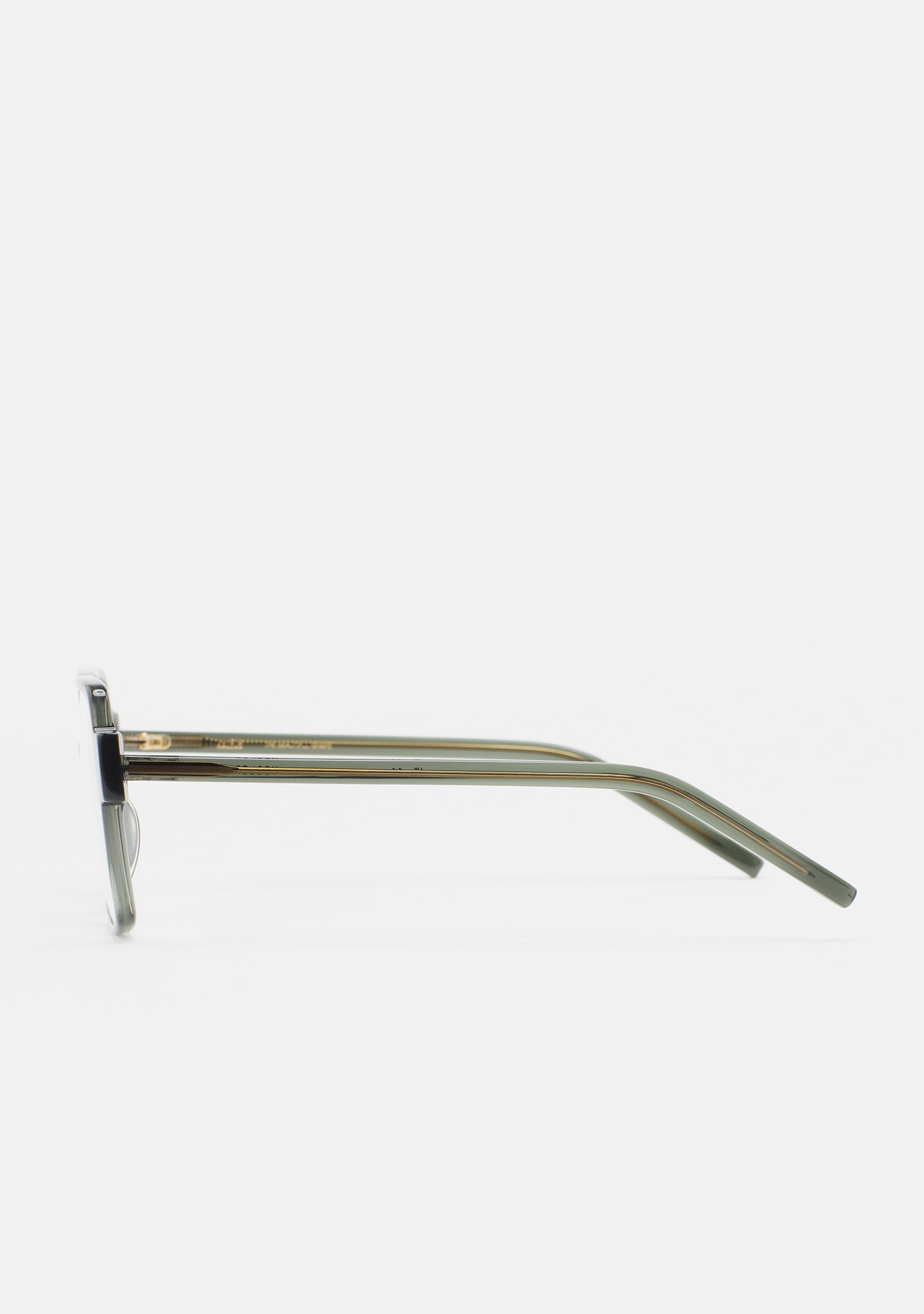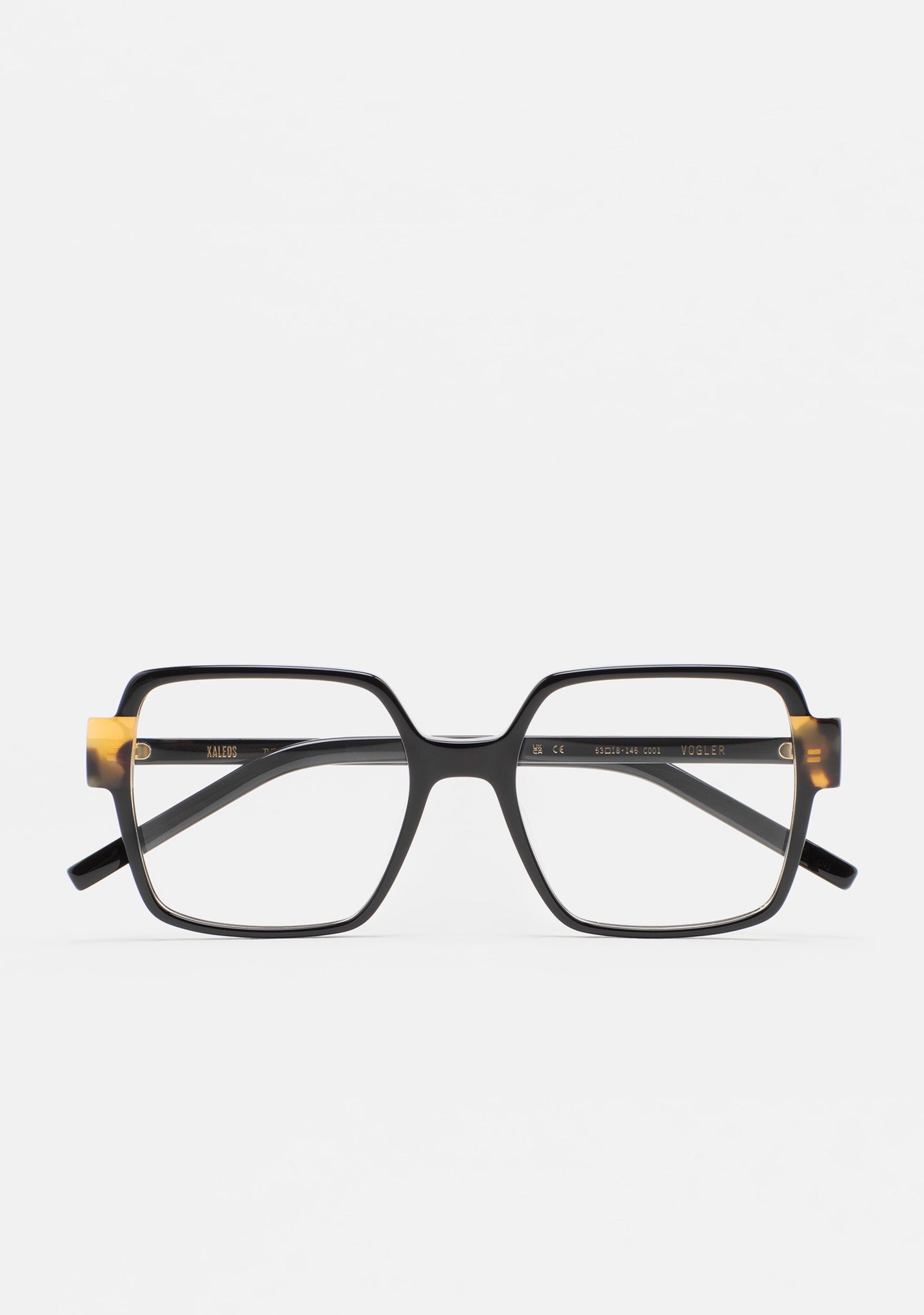 Gafa de ver de forma cuadrada. Frontal de acetato. Varillas de acetato. Plaquetas de acetato incorporadas. Hecha a mano.