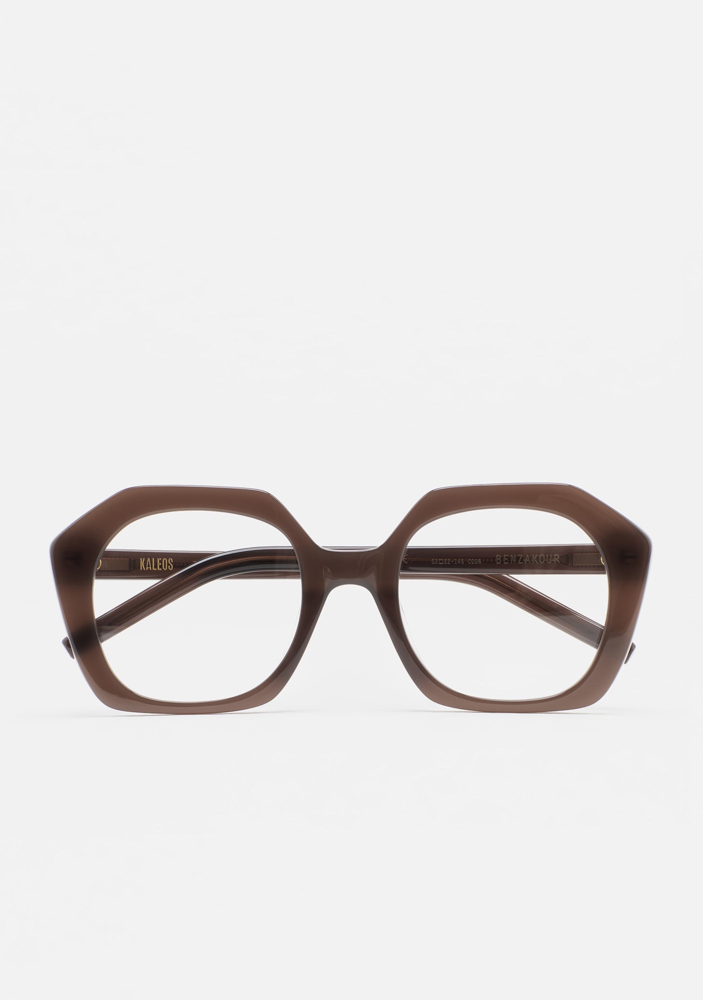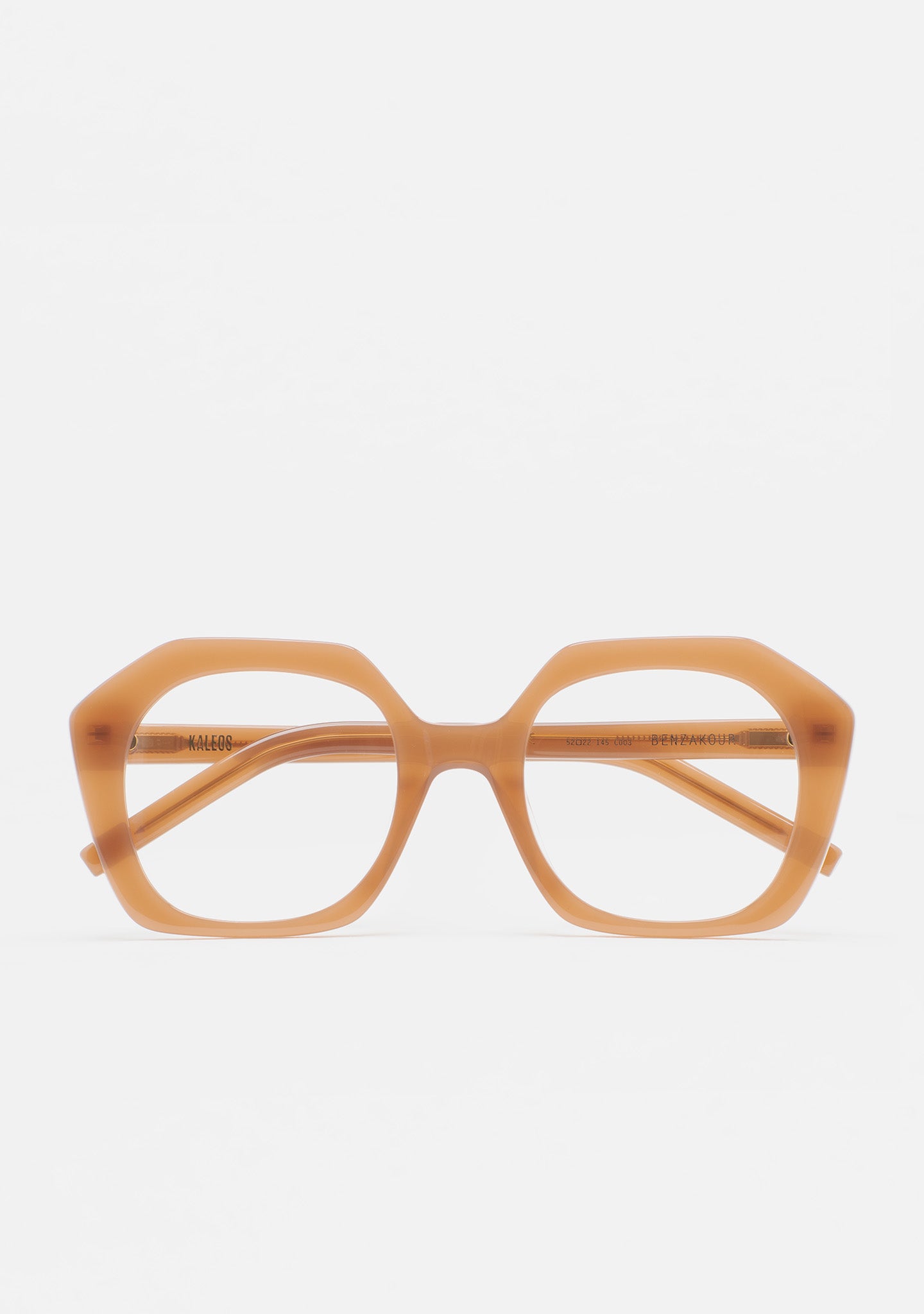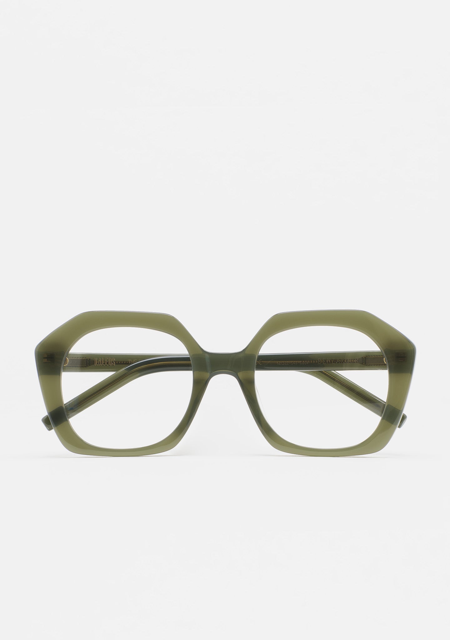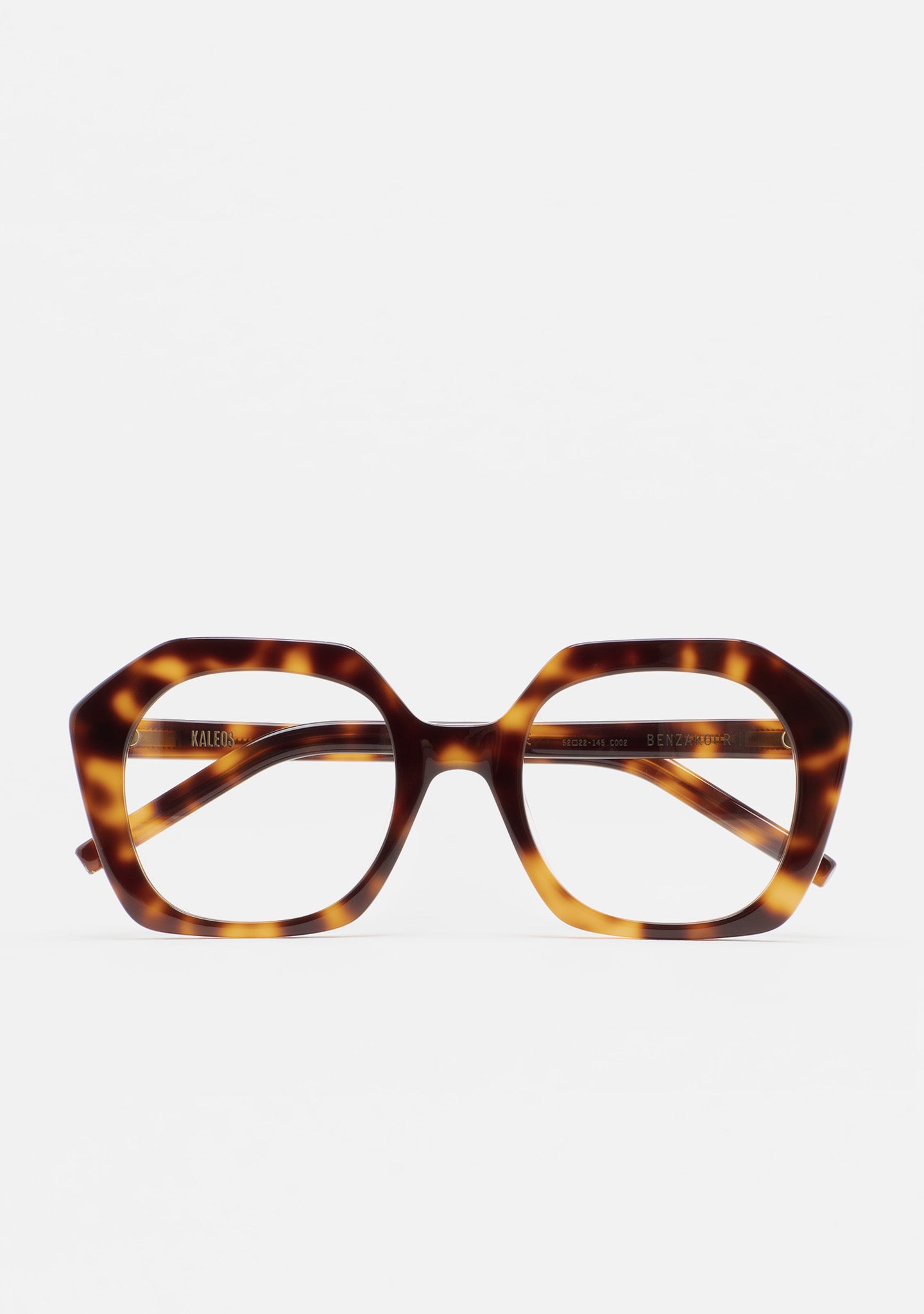 Gafa de ver de forma hexagonal. Frontal y varillas de acetato. Plaquetas de acetato incorporadas. Hecha a mano.
