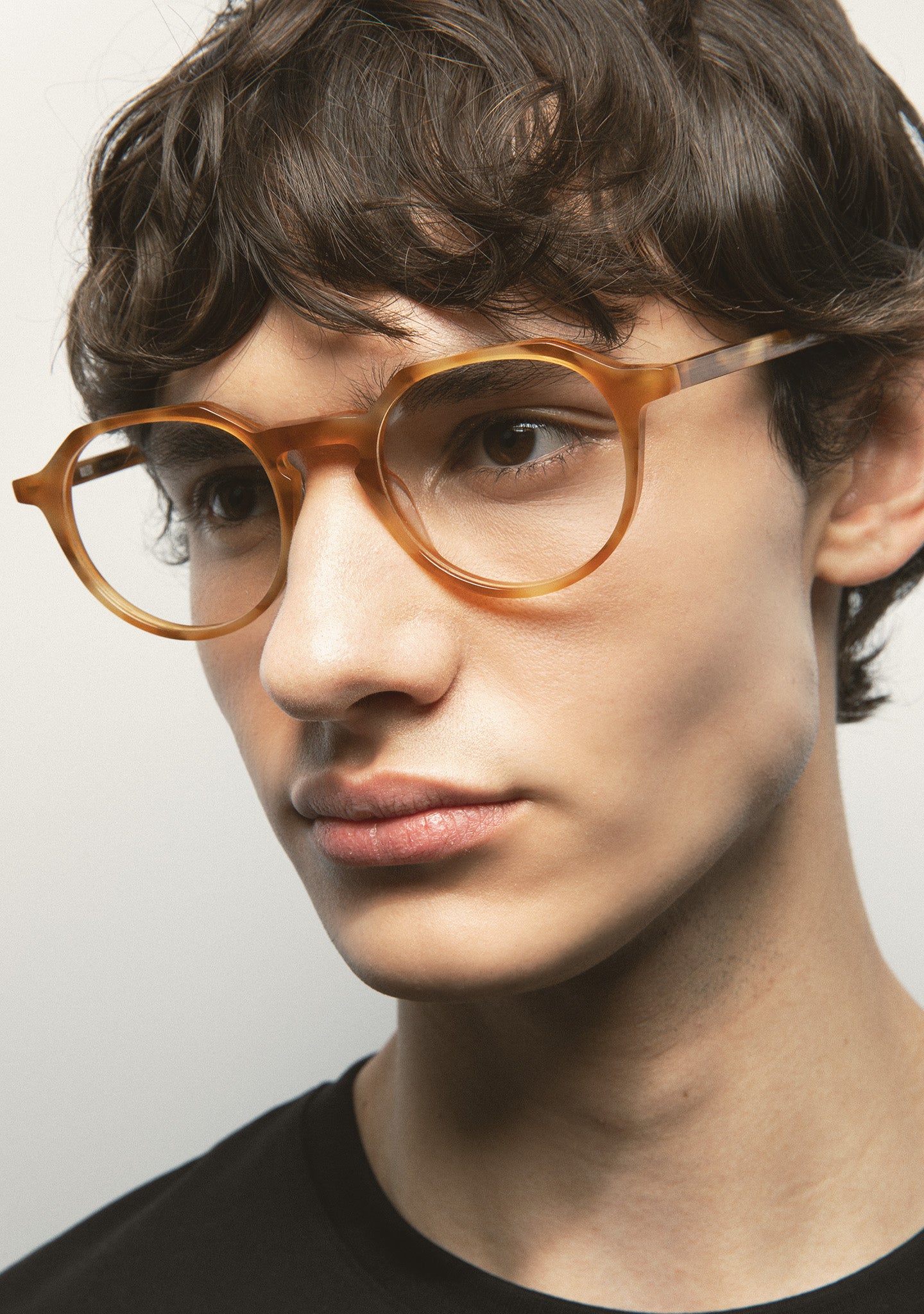 Gafas de ver de forma pantos con ceja plana y puent /e en llave. Silueta que equilibra modernidad y elegancia. Frontal y varillas de acetato. Plaquetas de acetato incorporadas. Hecha a mano. Gafa disponible en dos tamaños: mediana (M) y grande (L).