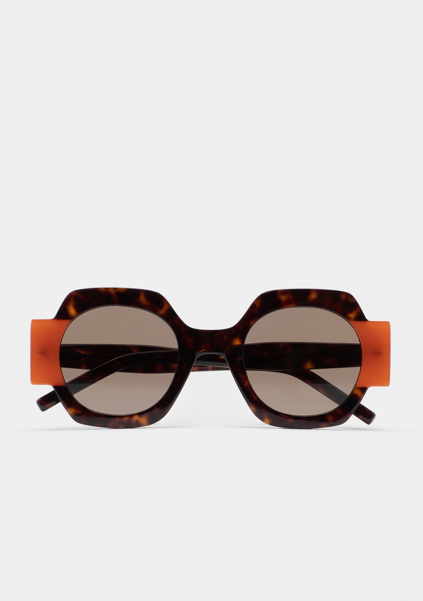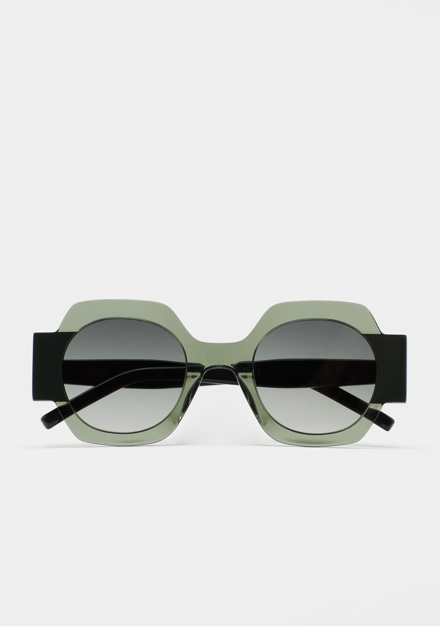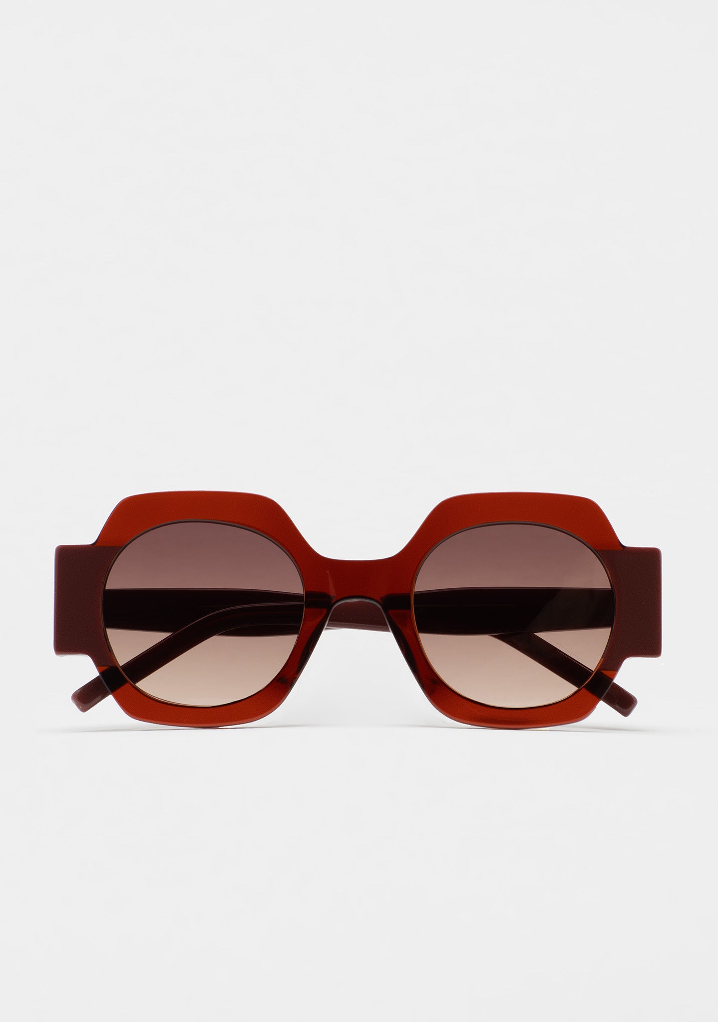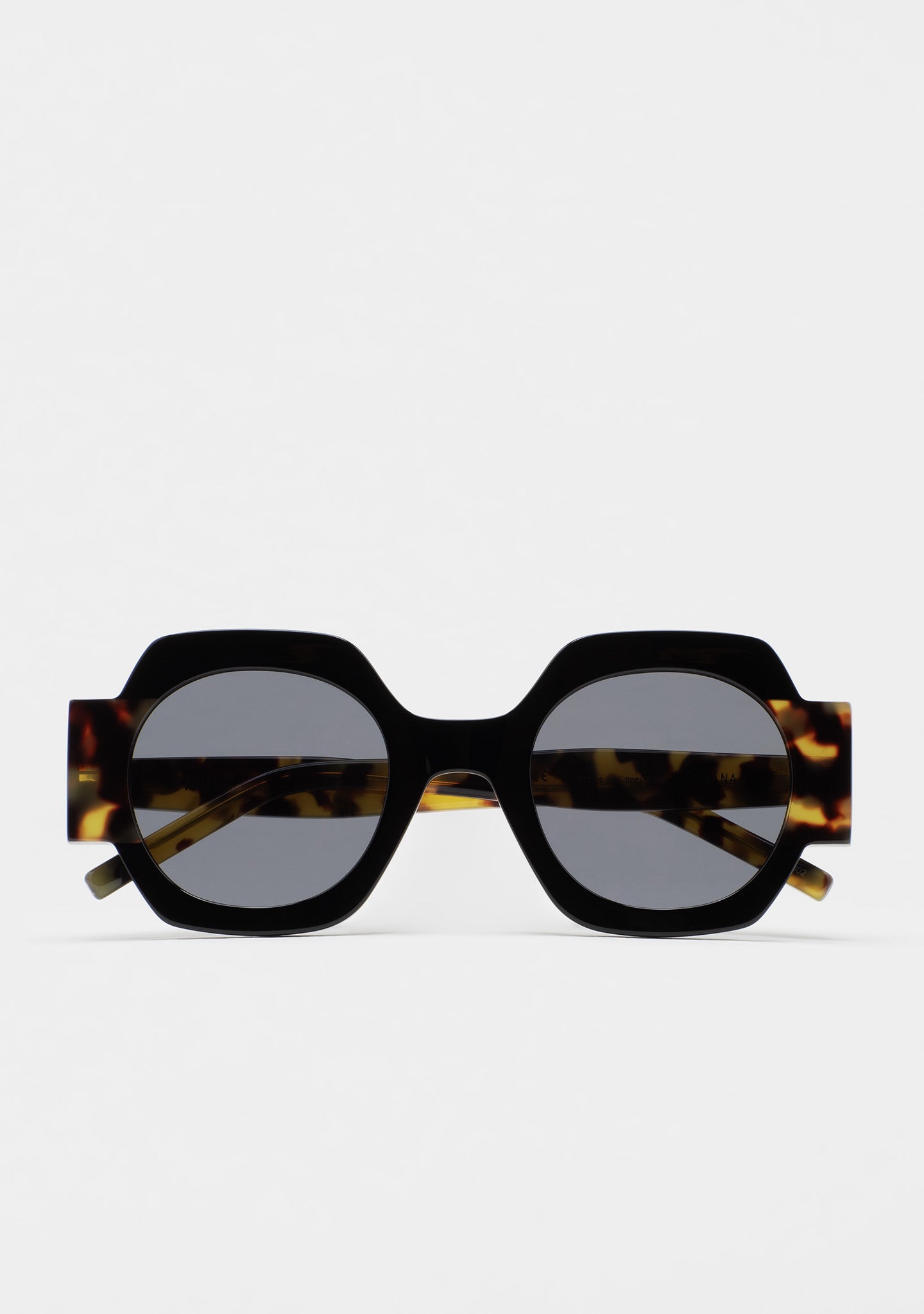 Gafa de sol de forma cuadrada. Frontal de acetato con laminado. Varillas de acetato. Lente base 2 con 100% protección UV y tratamiento antirreflejante. Lente Categoría 2. Plaquetas de acetato incorporadas. Hecha a mano.