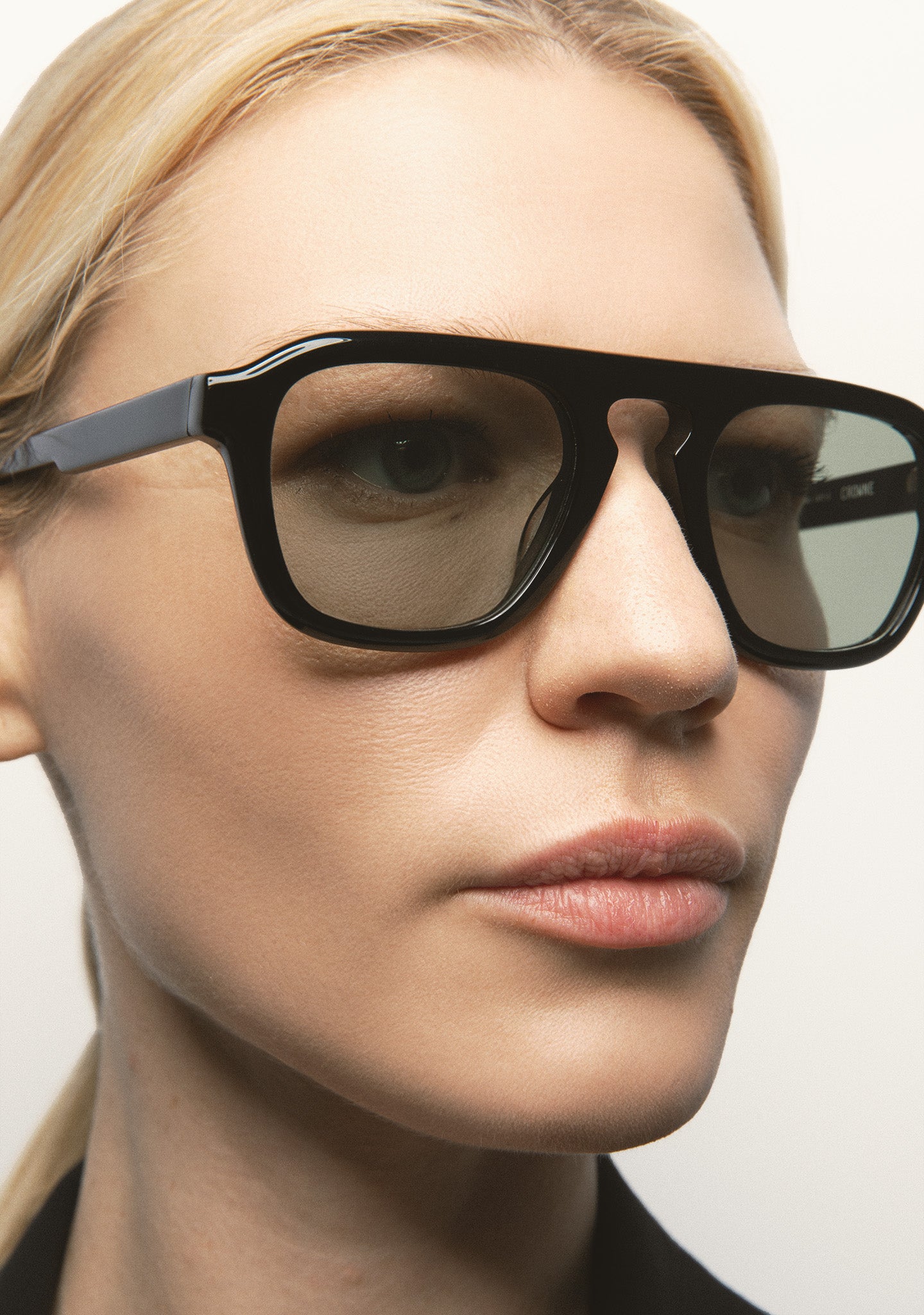 Gafas de sol de forma rectangular. Diseño que destaca por la geometria y detalles que marcan la diferencia. Frontal y varillas de acetato. Lente base 2 con protección UV y tratamiento antirreflejante. Lente Categoría 1-3. Plaquetas de acetato incorporadas. Hecha a mano.
