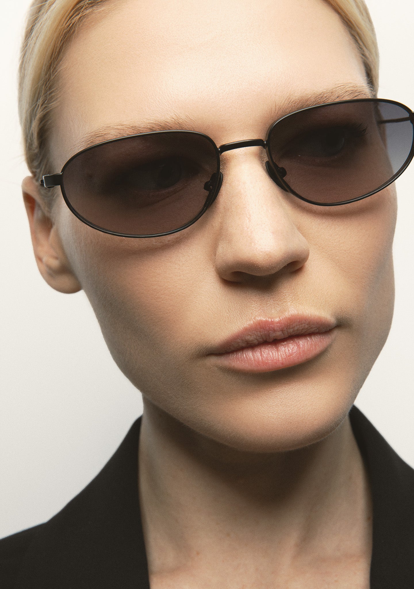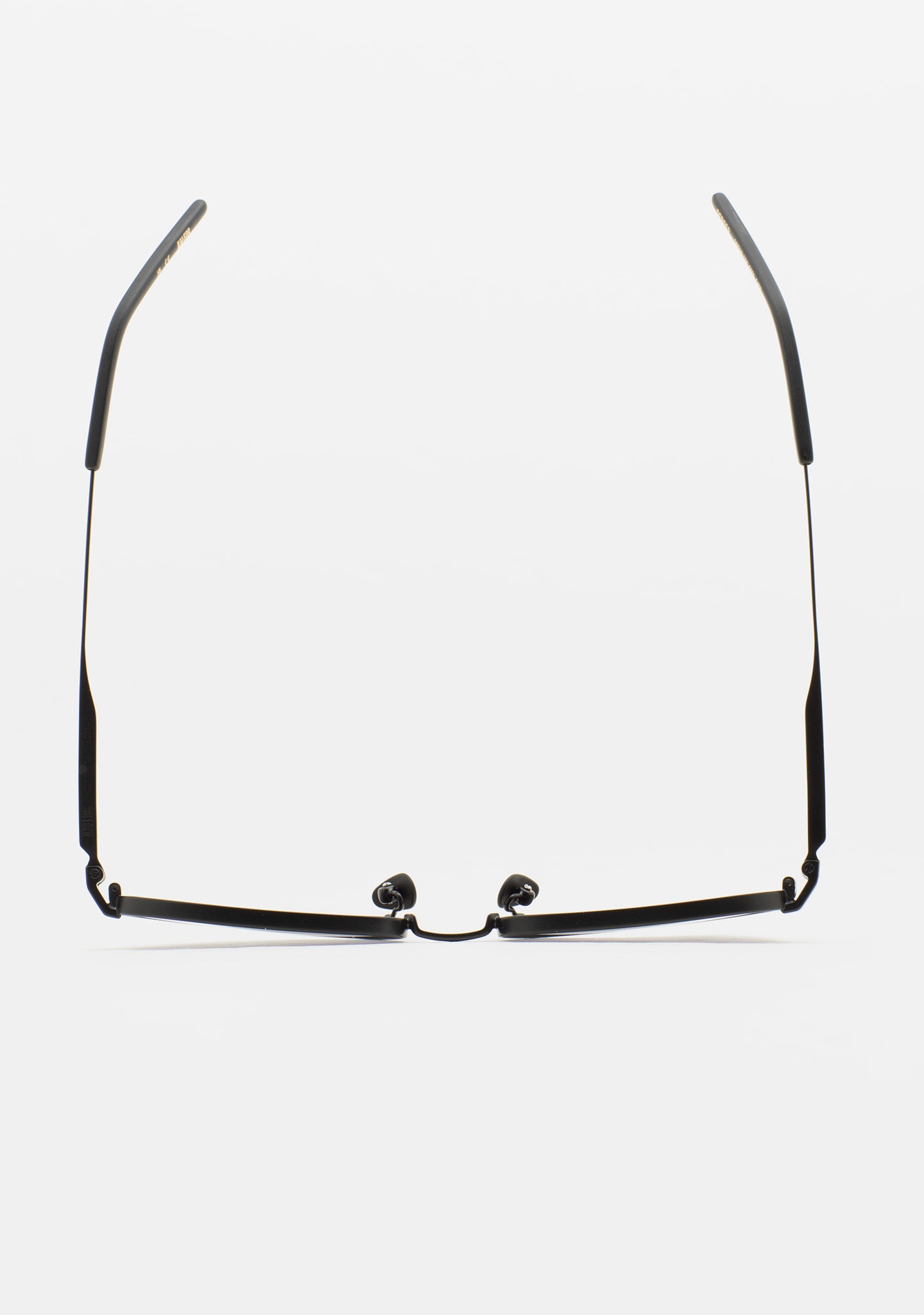 Gafas de sol de forma cat-eye. Ligera, moderna y impactante. Frontal y varillas de acero inoxidable. Varillas con terminal de acetato. Lente base 2 con 100% protección UV y tratamiento antirreflejante. Lente Categoría 2-3. Plaquetas incorporadas. Hecha a mano.