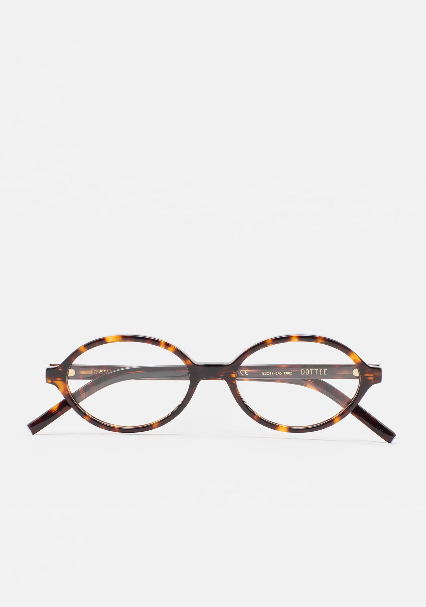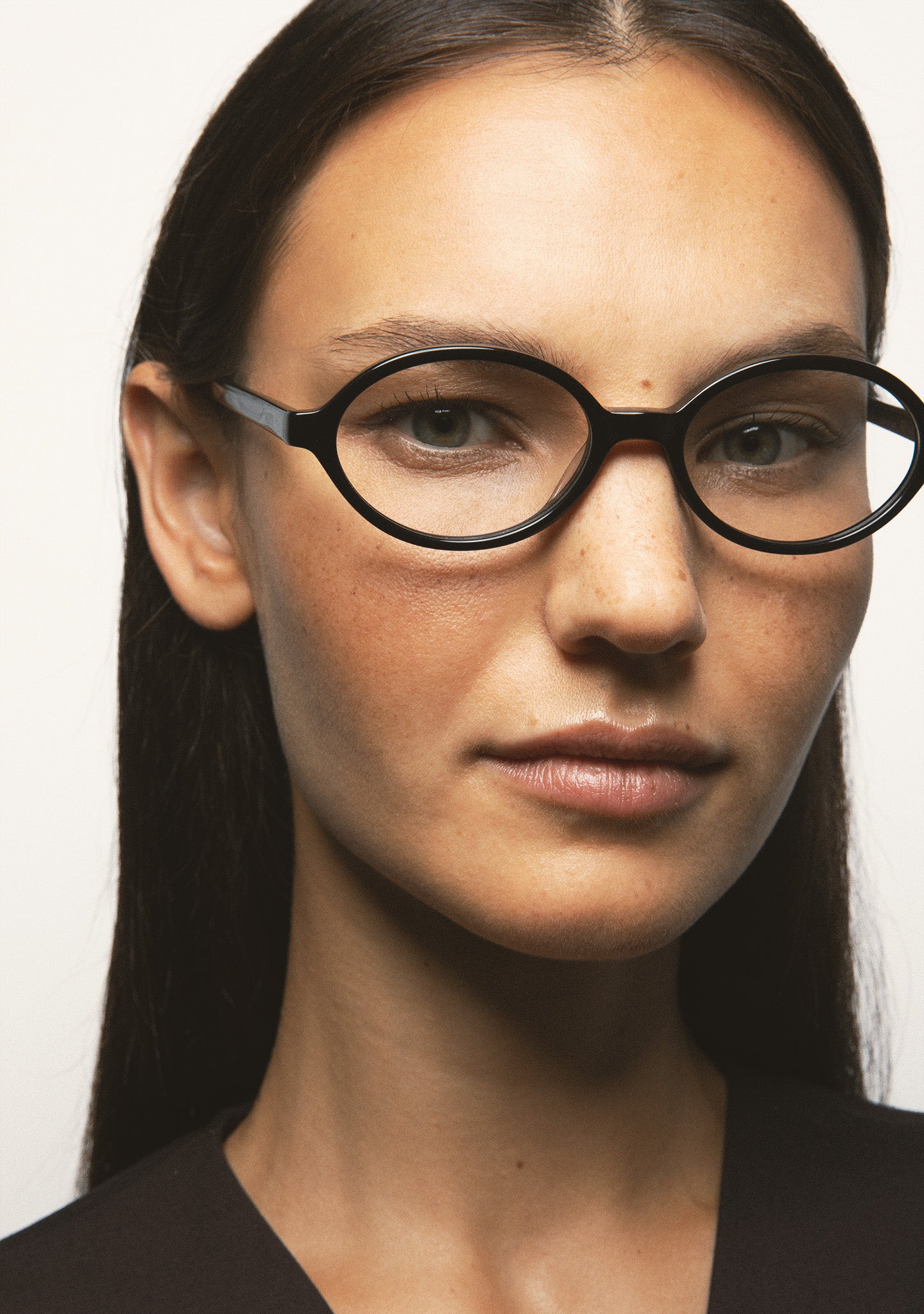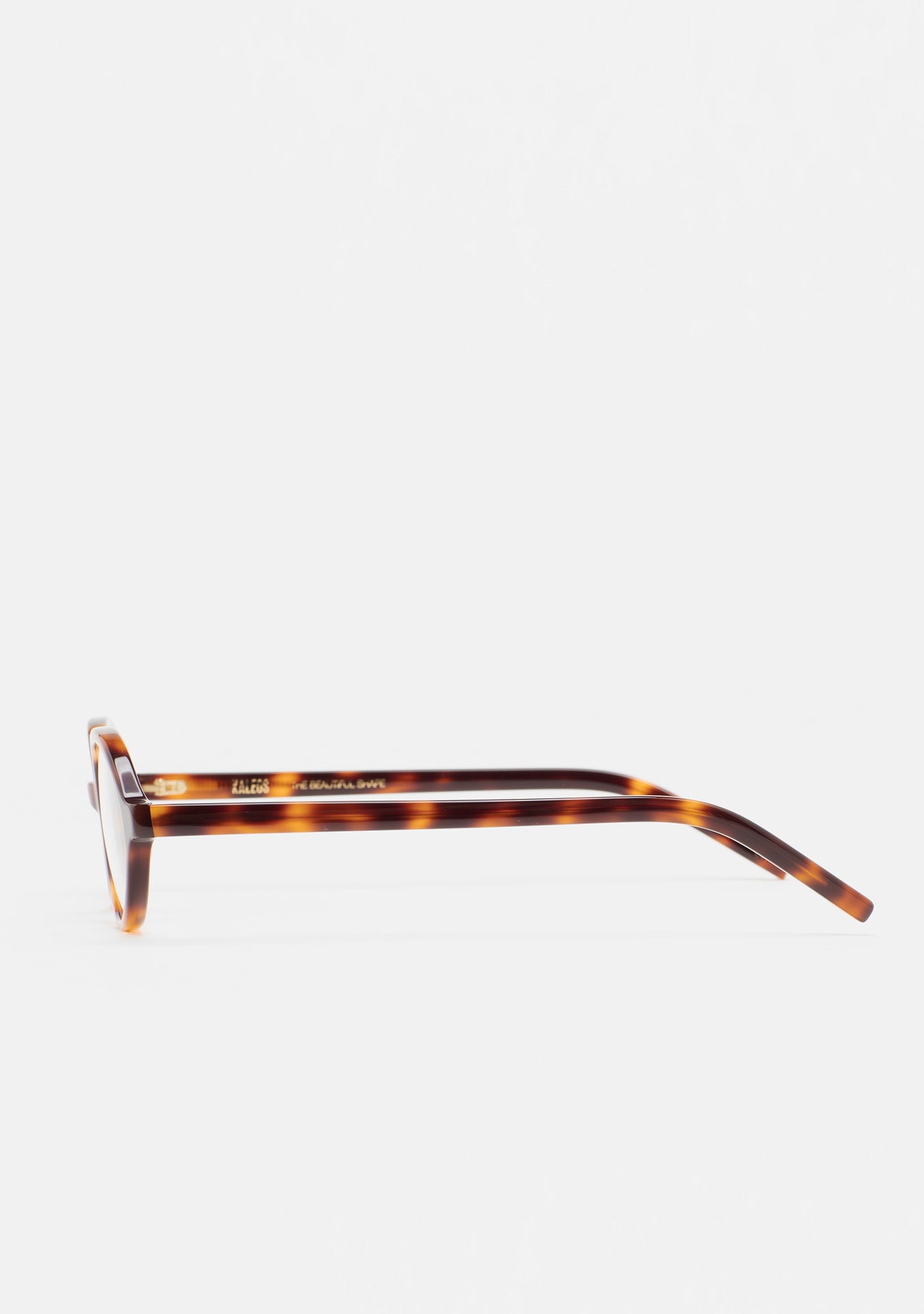 Gafa de ver de forma ovalada. Frontal y varillas de acetato. Plaquetas de acetato incorporadas. Hecha a mano.