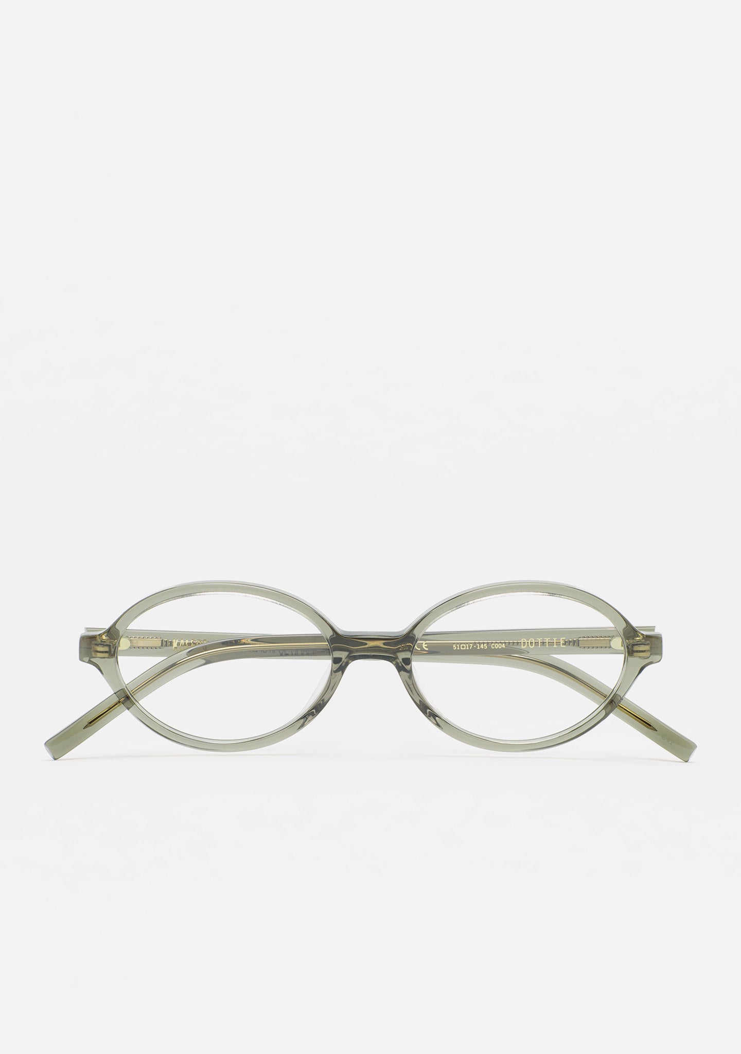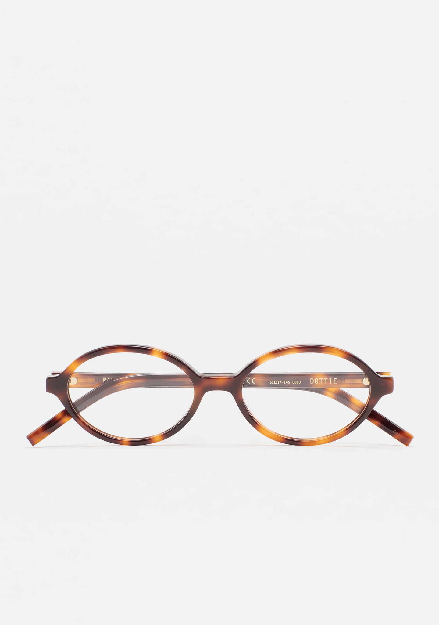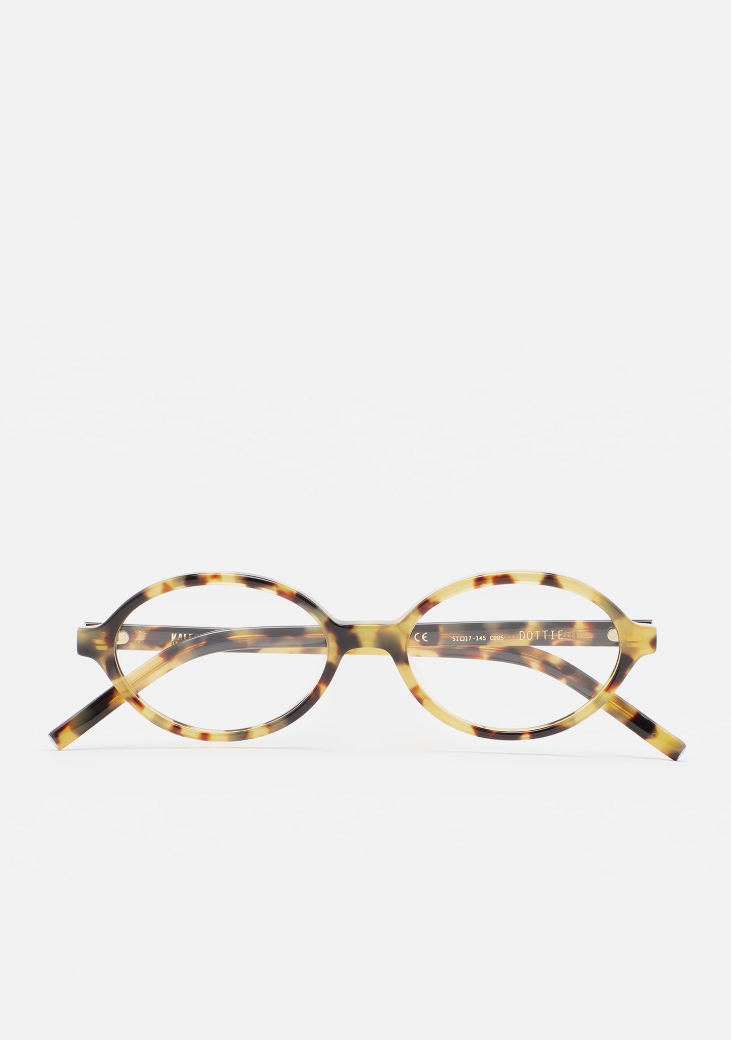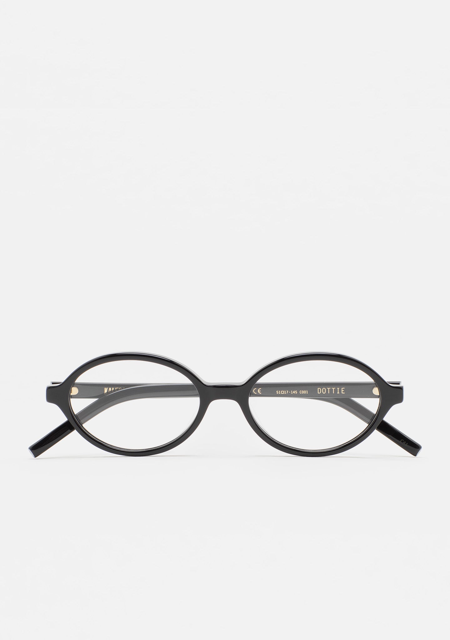 Gafa de ver de forma ovalada. Frontal y varillas de acetato. Plaquetas de acetato incorporadas. Hecha a mano.