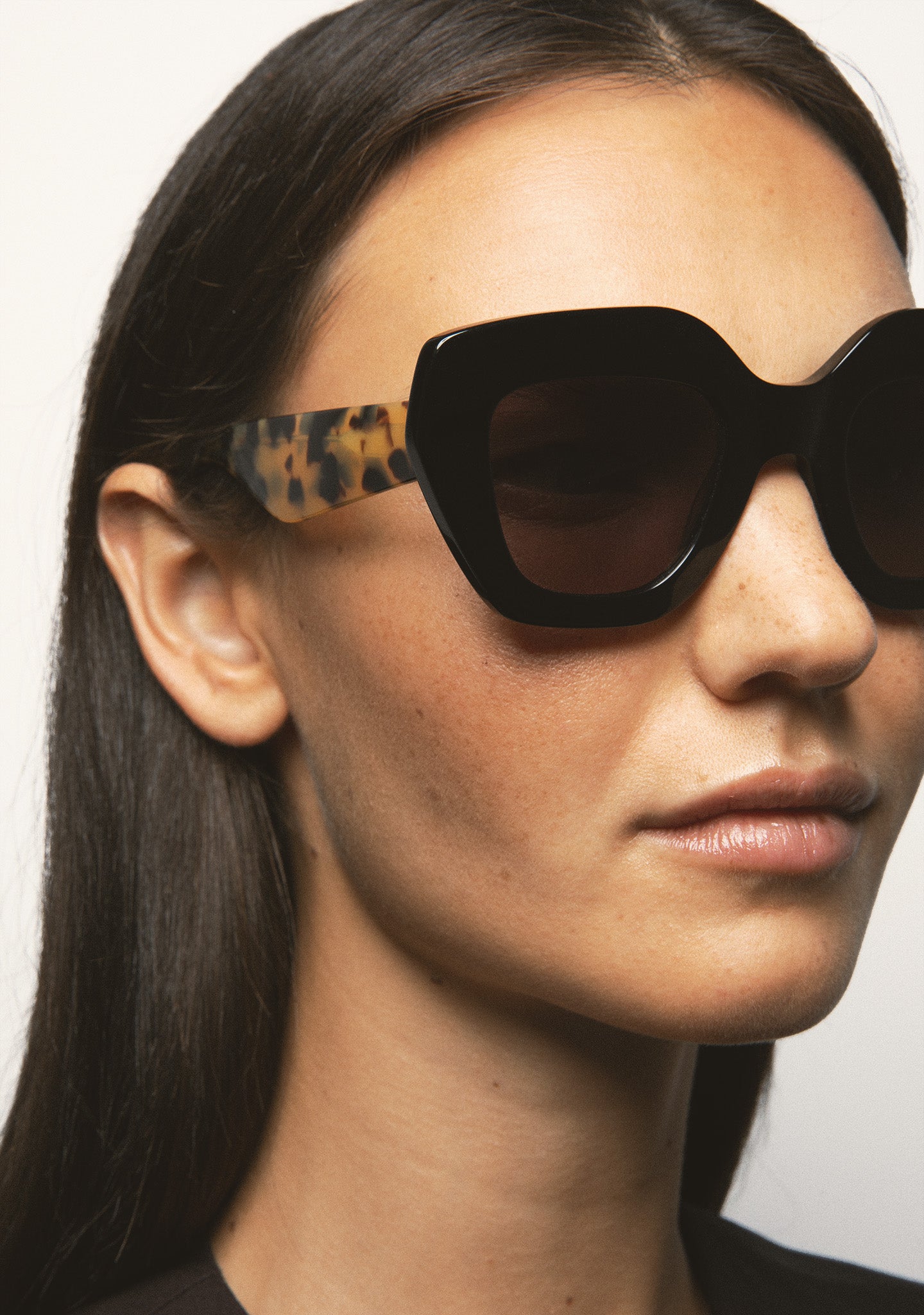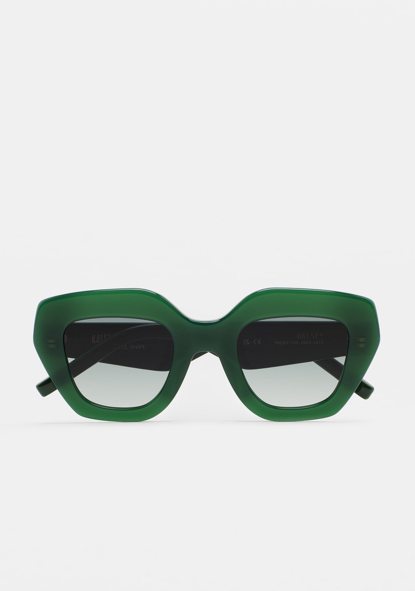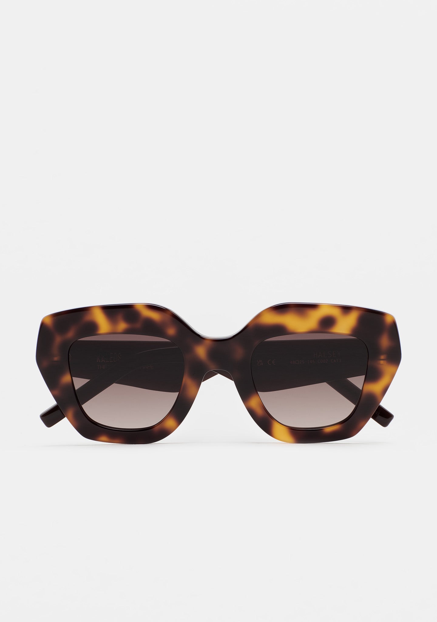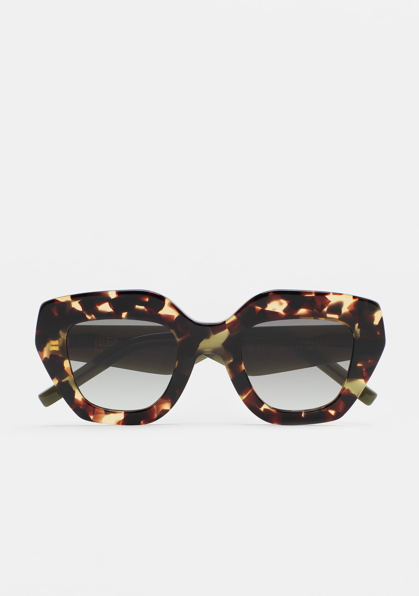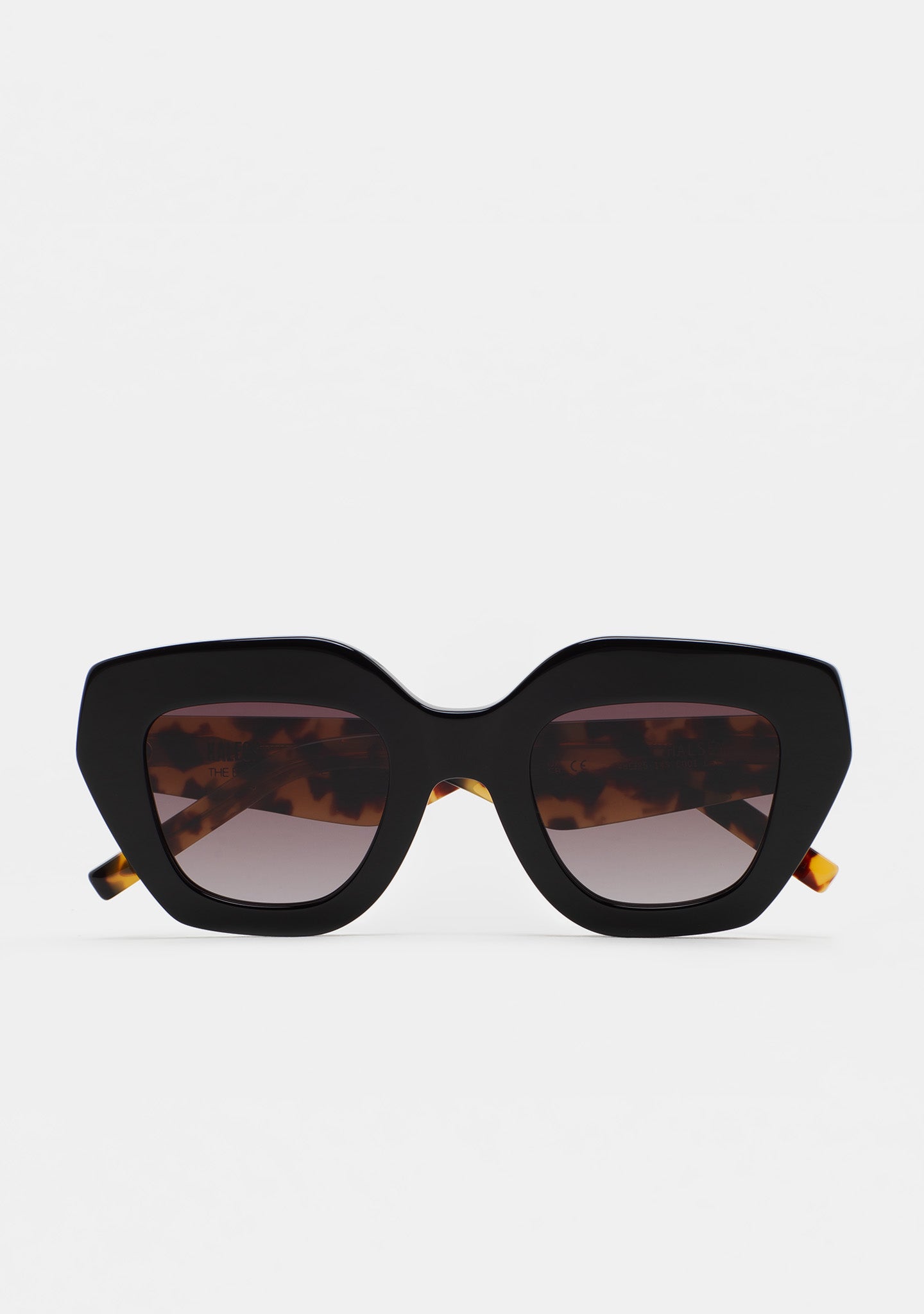 Gafa de sol de forma mariposa. Frontal de acetato. Lente base 2 con 100% protección UV y tratamiento antirreflejante. Lente Categoría 3. Plaquetas de acetato incorporadas. Hecha a mano.