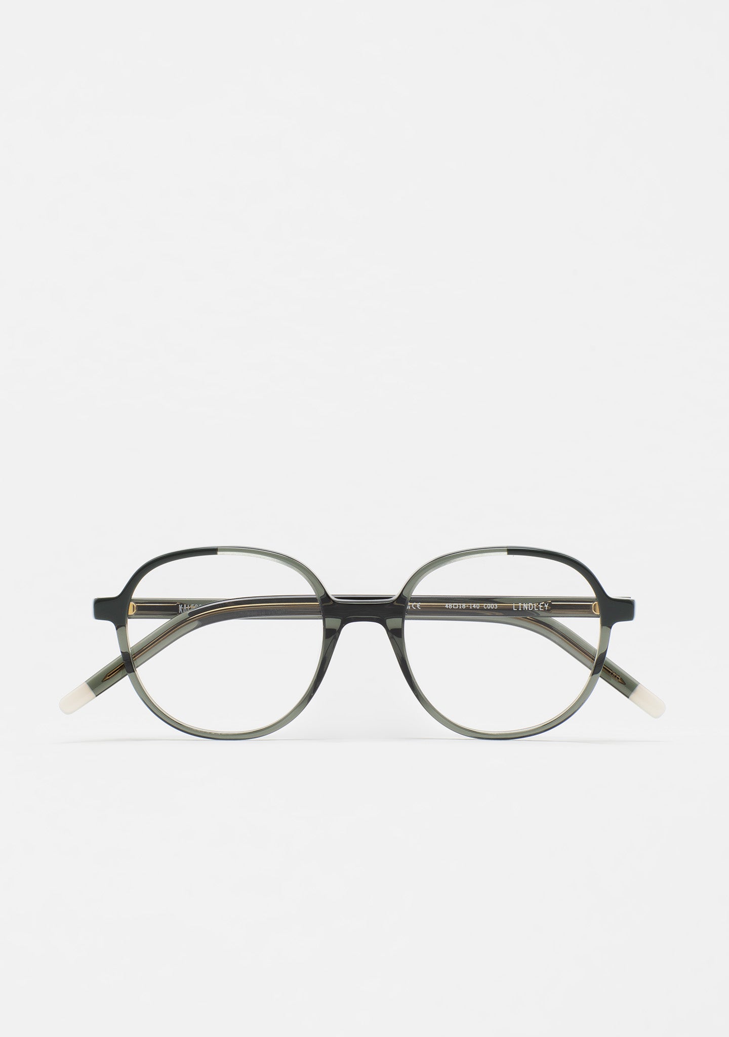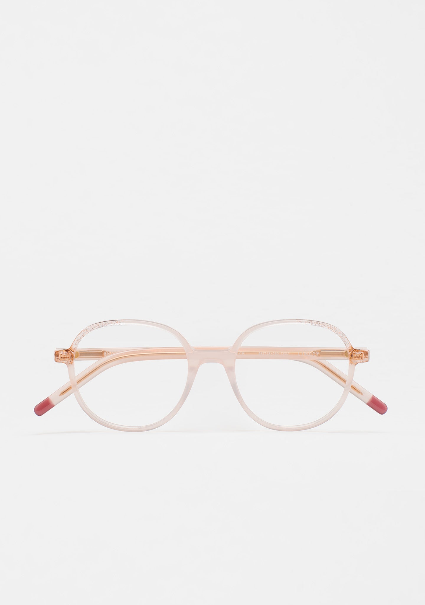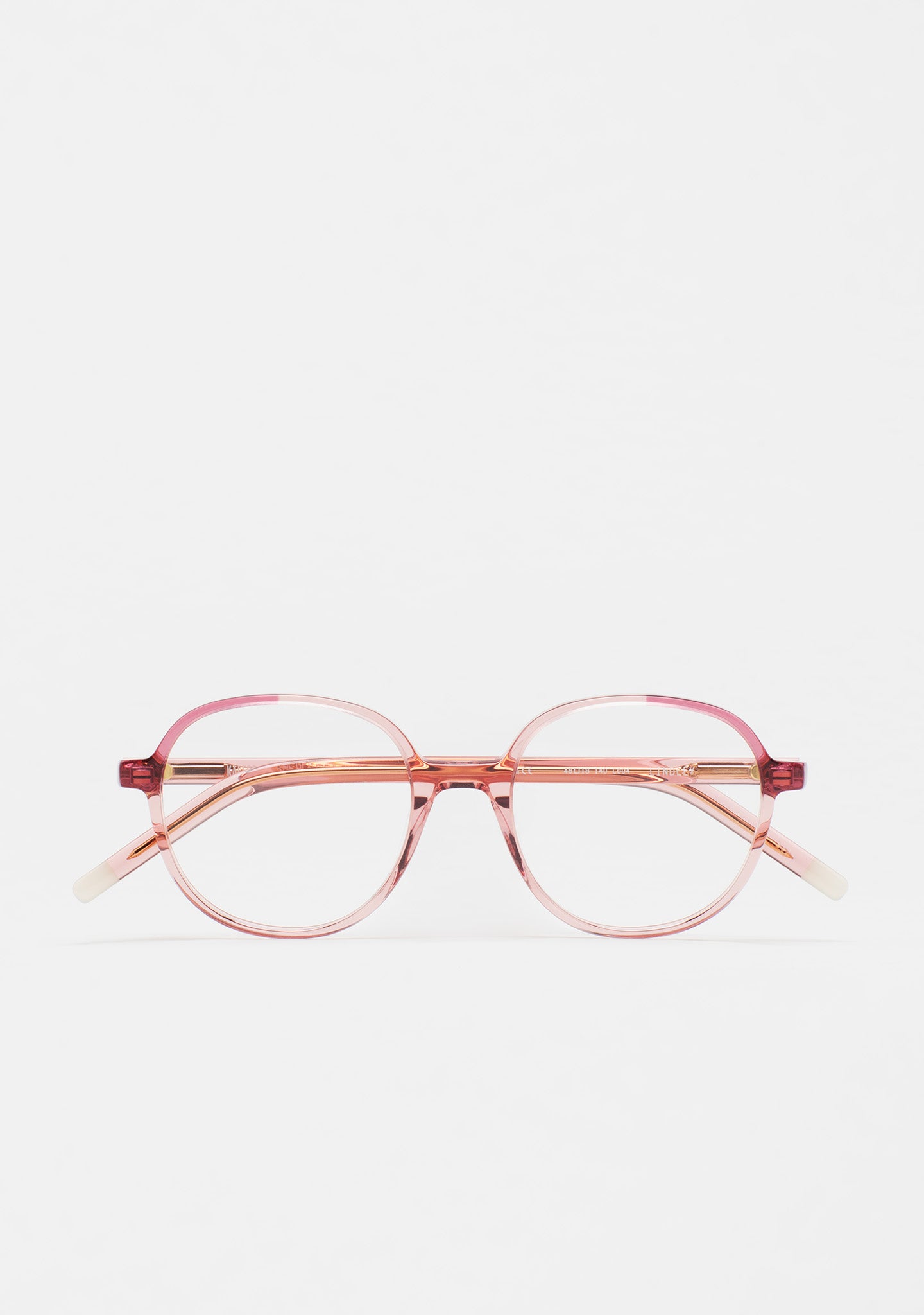 Gafa de ver KIDS de forma redondeada. Frontal de acetato con laminado. Varillas de acetato con terminal. Plaquetas de acetato incorporadas. Hecha a mano.