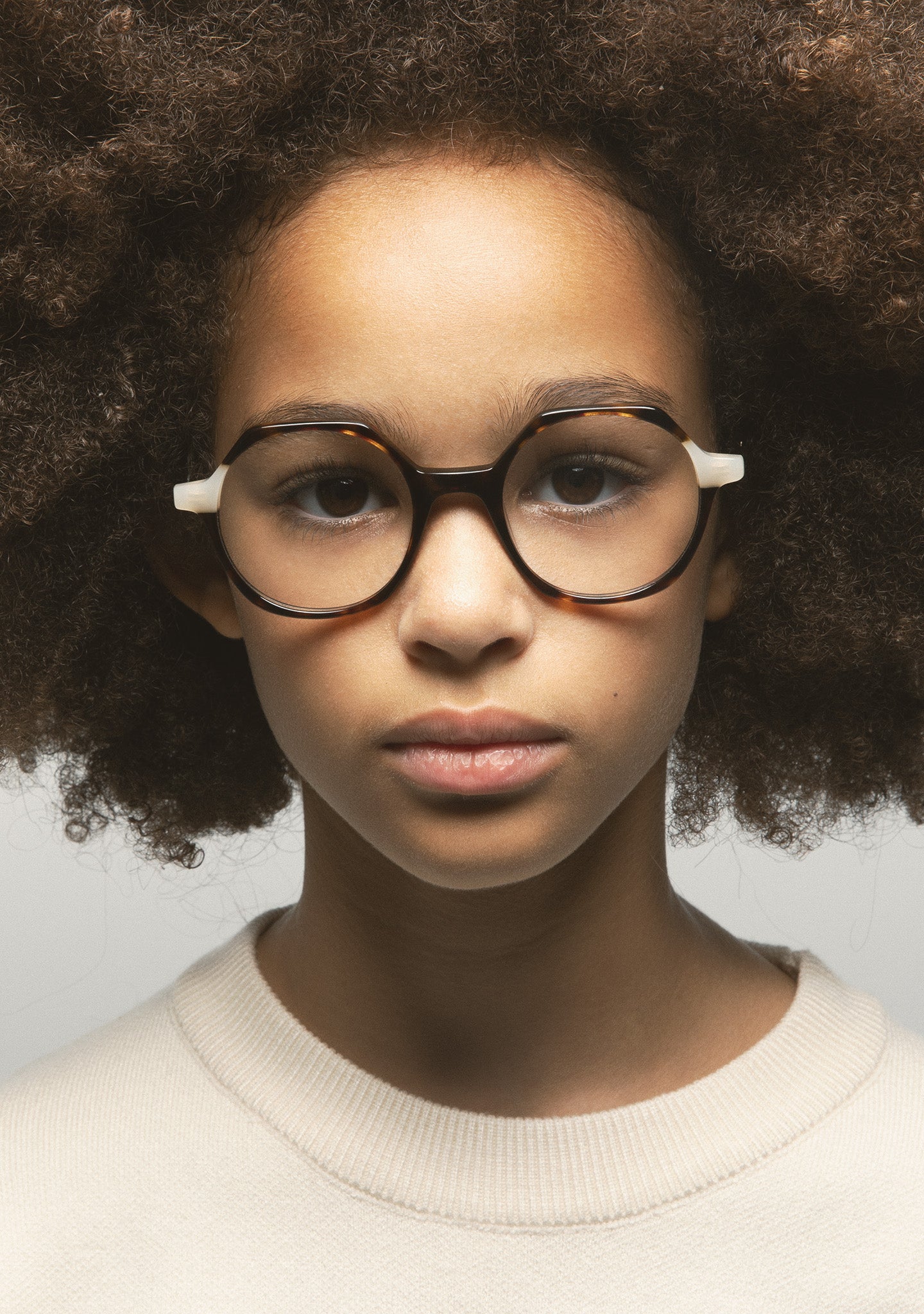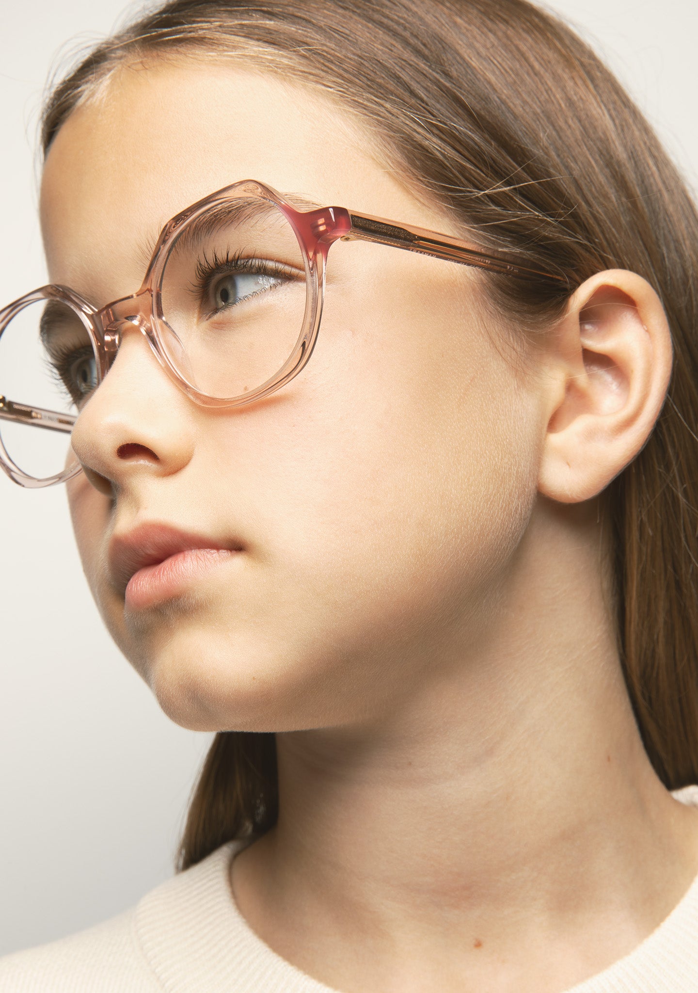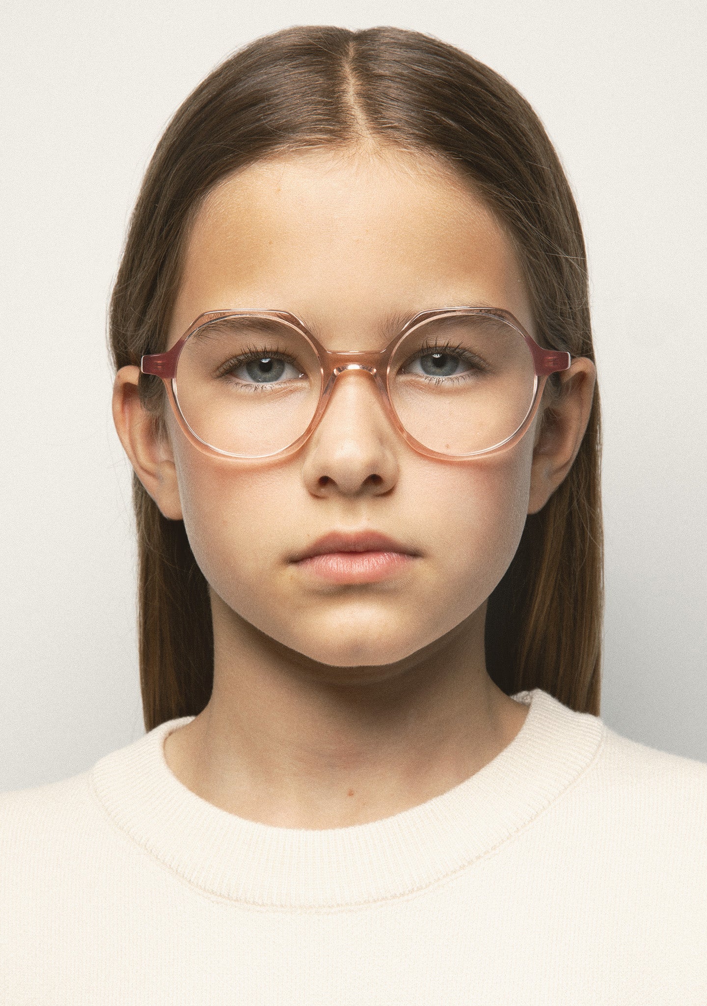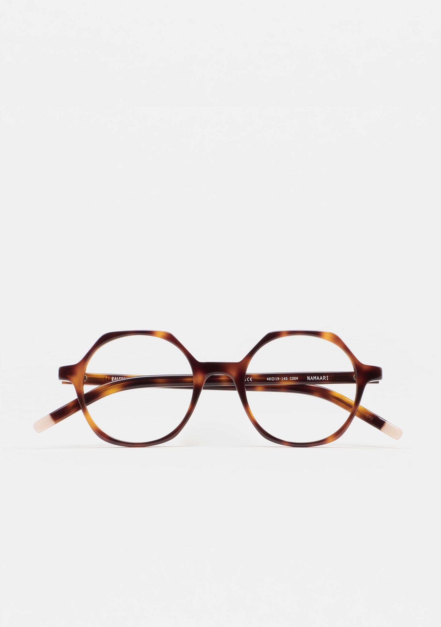 Gafa de ver KIDS de forma hexagonal. Frontal de acetato con laminado. Varillas de acetato con terminal. Plaquetas de acetato incorporadas. Hecha a mano.